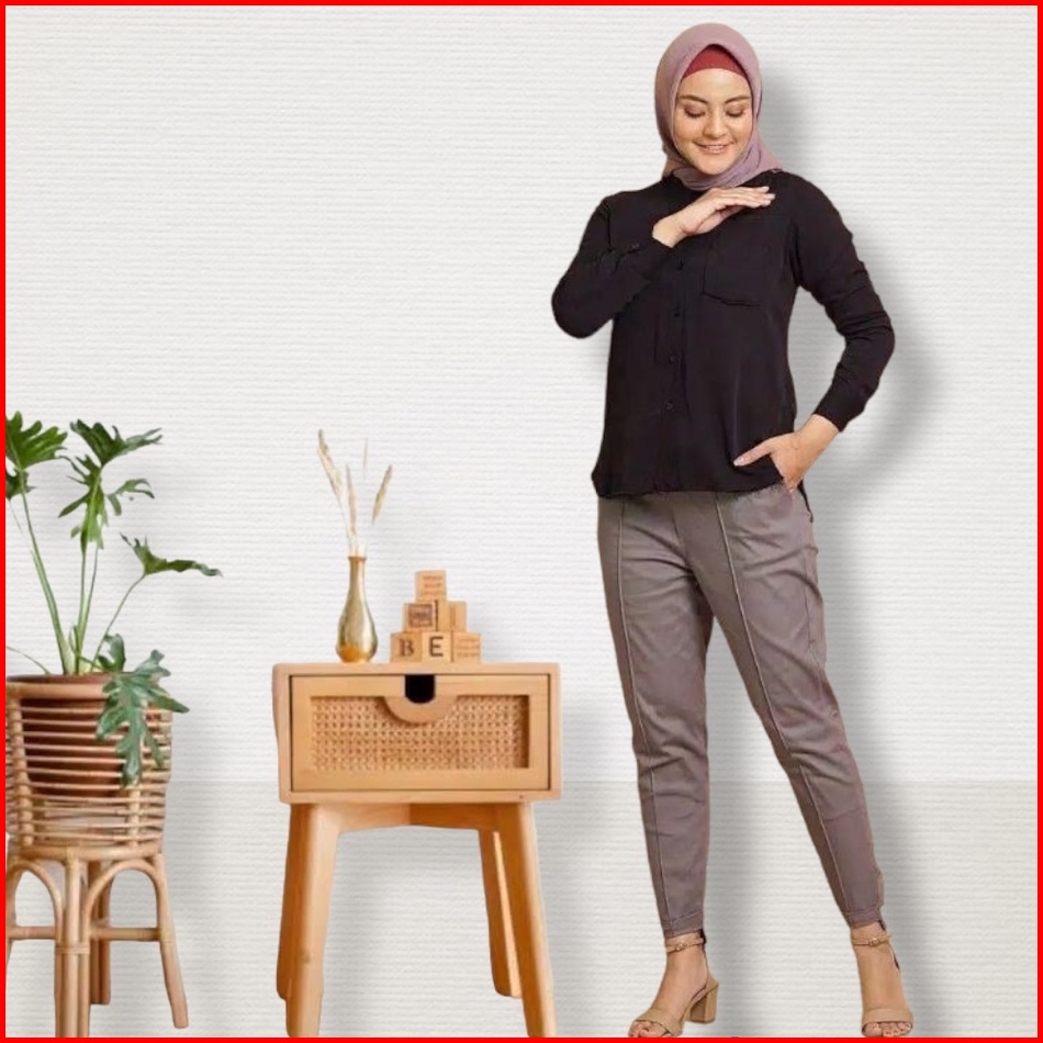Baggy Pants Twill Combed Premium Grade A Celana Panjang Wanita Celana Kantor Kerja