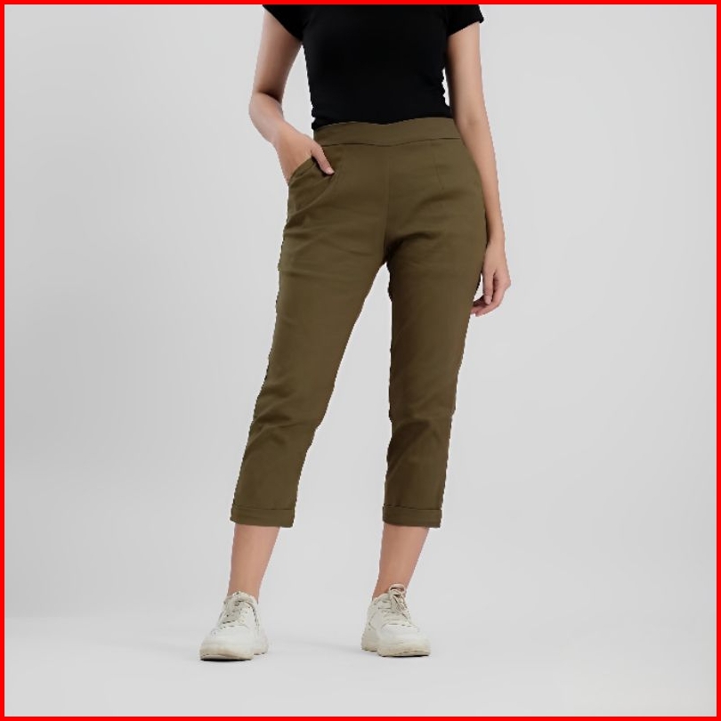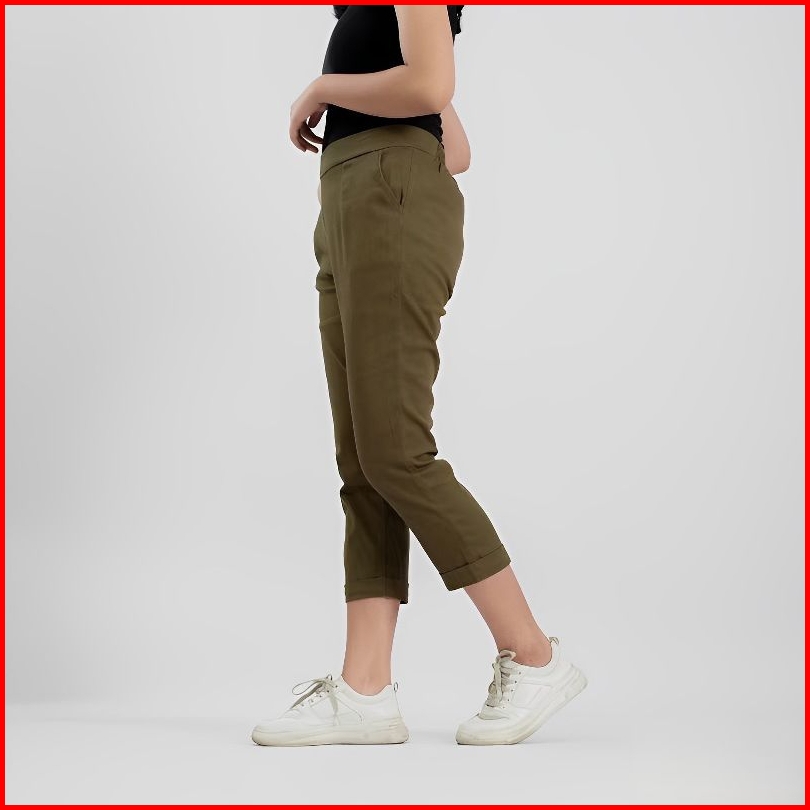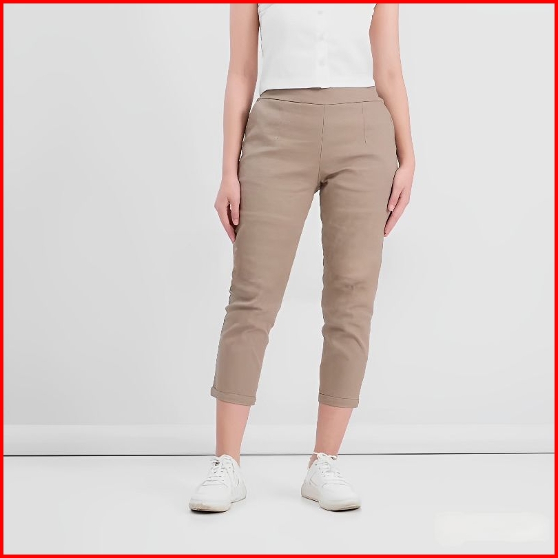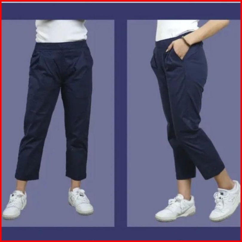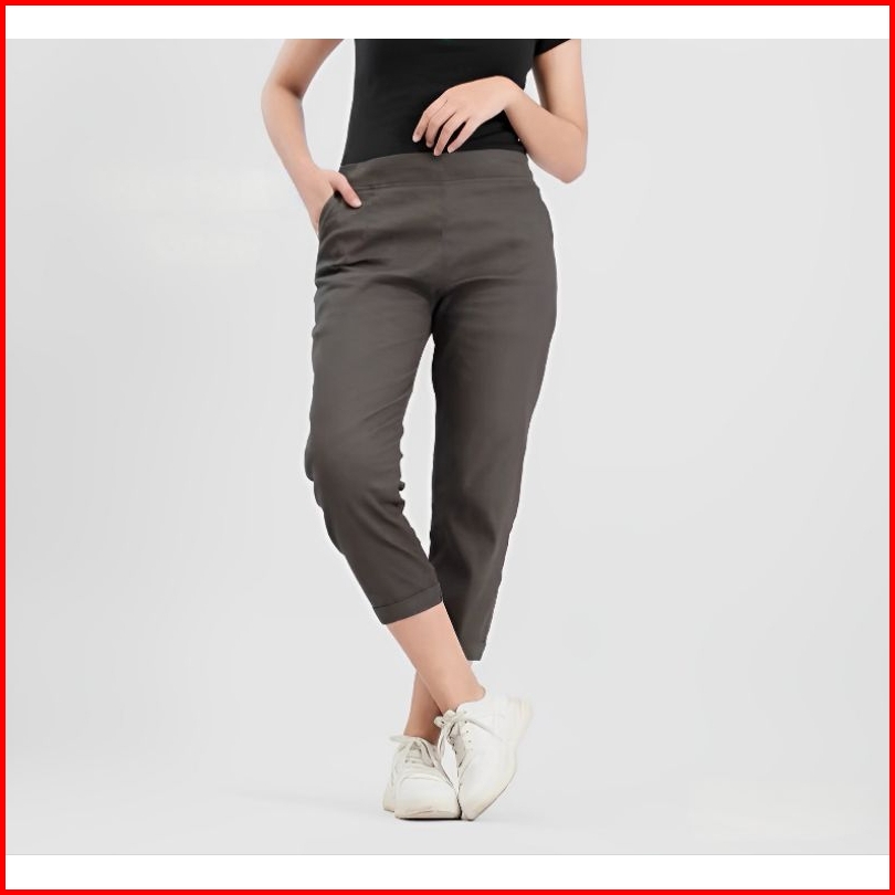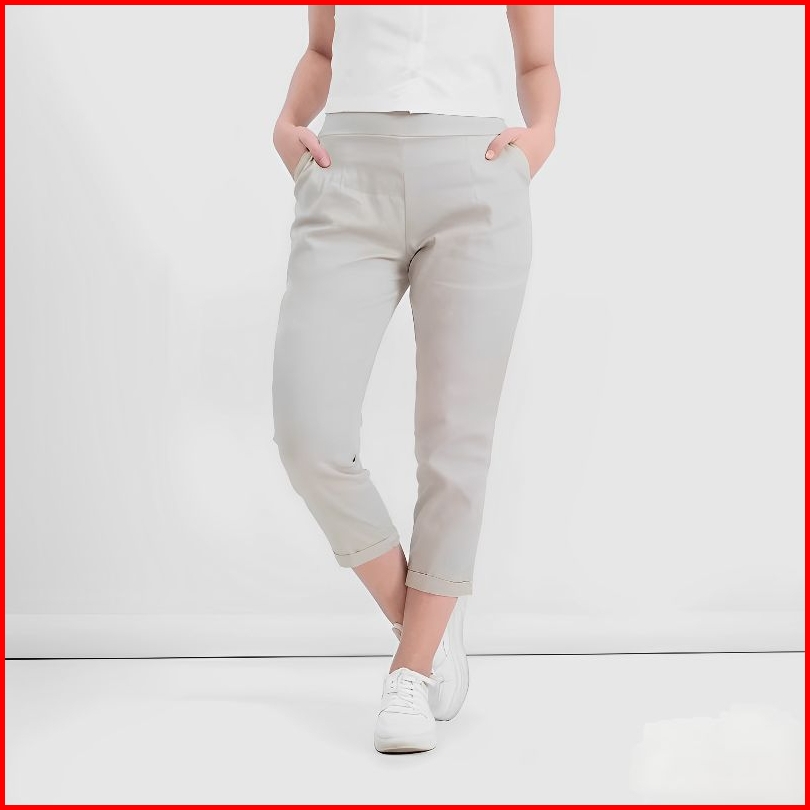Ameena - Celana Katun Wanita Stretch 7 9 Gio Baggy Pants Chinos Panjang Bahan Cotton Twill Strech Tebal Kekinian Terlari