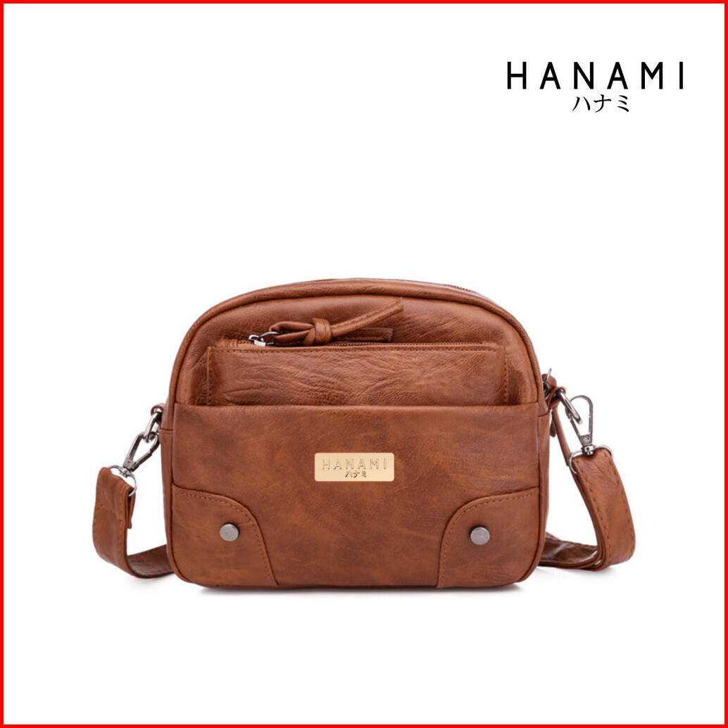 Hanami Tas Selempang Wanita Kulit Premium Coklat Actiona Ta443b7 Sling Bag Batam Korea Cewek Simple Branded Remaja Kekin