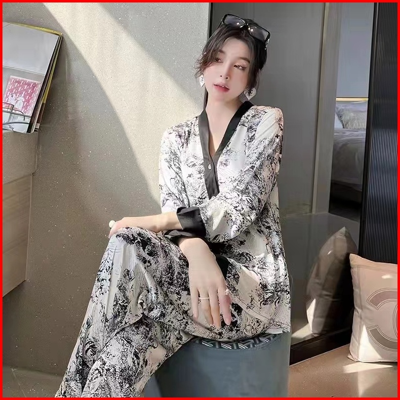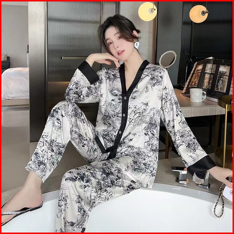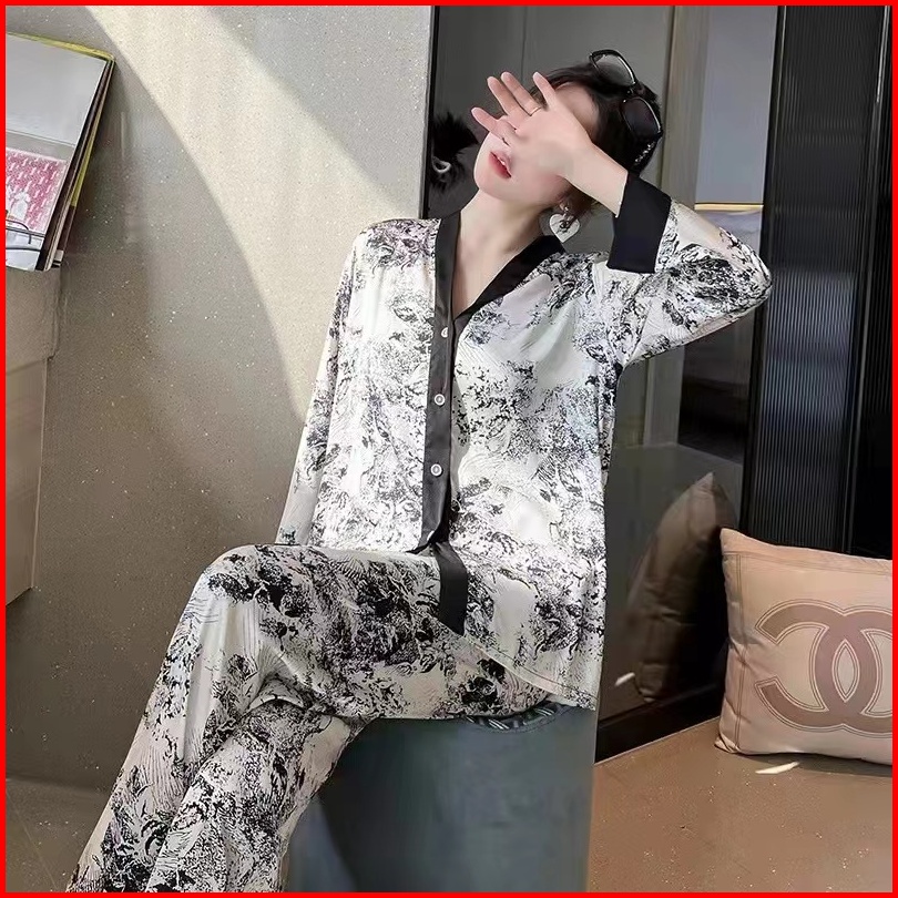 2025 Pakaian Rumah Piyama Wanita Versi Korea Baru Set Piyama Sutra Sutra Es Lengan Panjang