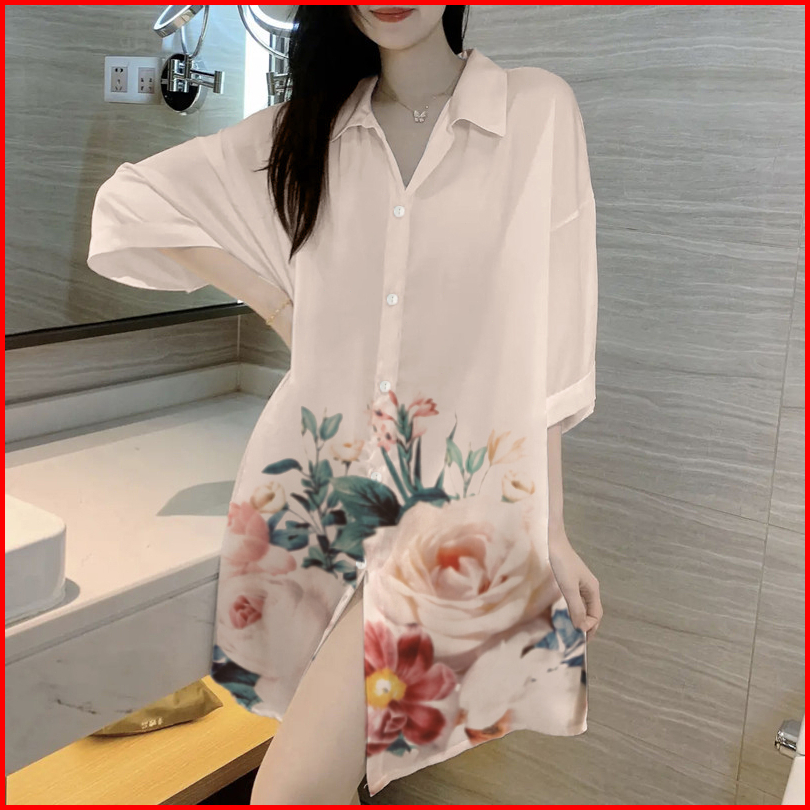2025 Baju Tidur Baru Wanita Kardigan Sutra Sutra Es Gaun Piyama Lengan Pendek Pakaian Rumah Longgar
