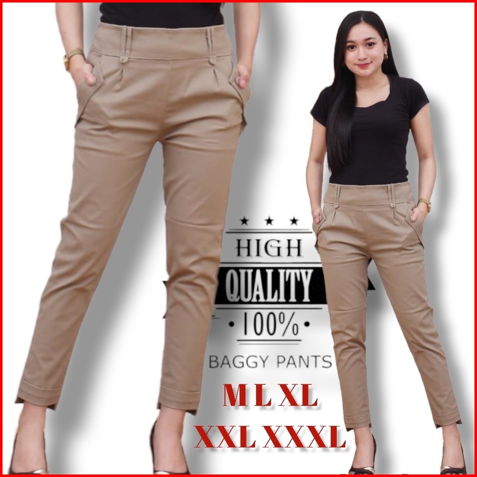 Celana Panjang Wanita Murah Kekinian - Baggy Pants Jumbo Bahan Katun Combed Stretch Kasual