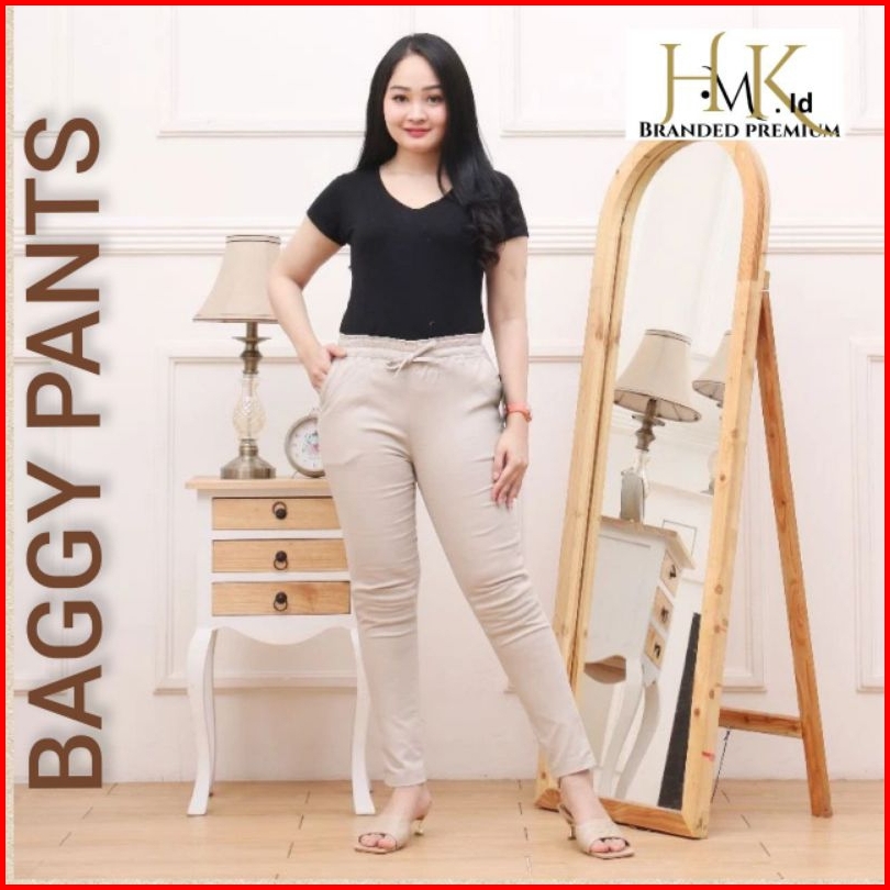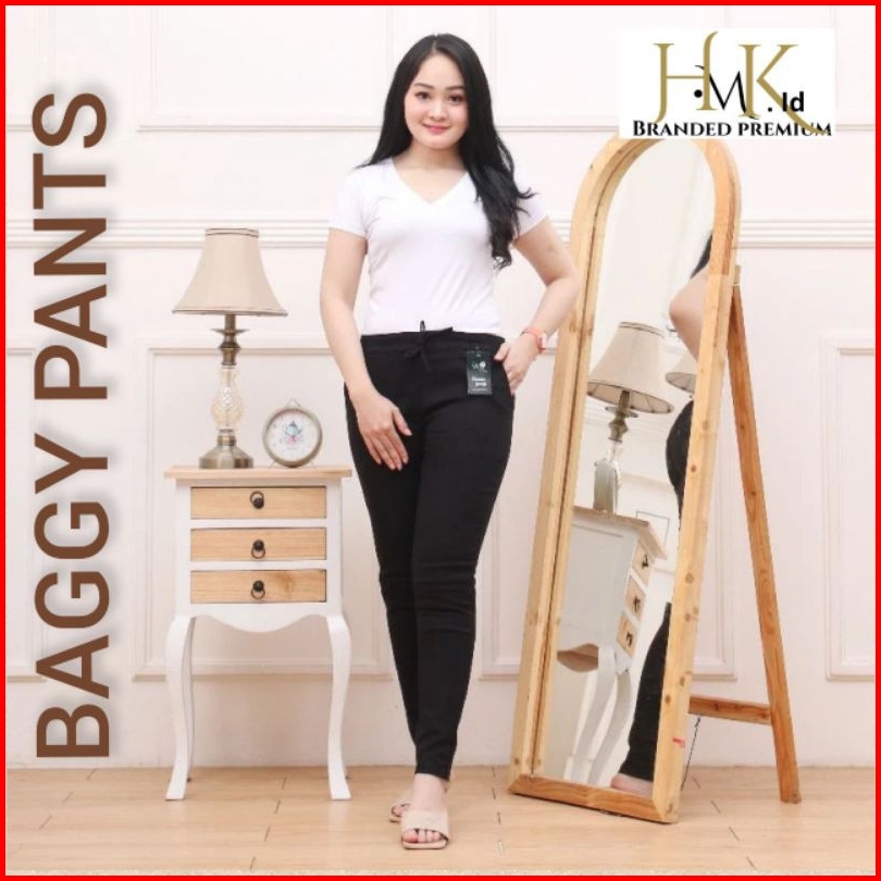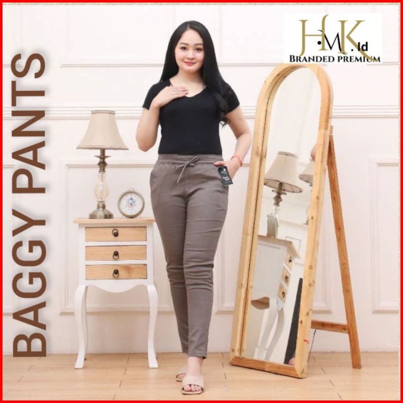 Celana Wanita Baggypants Premium Bahan Stretch Combad Cassual Melar Model Tali Size Standar Jumbo