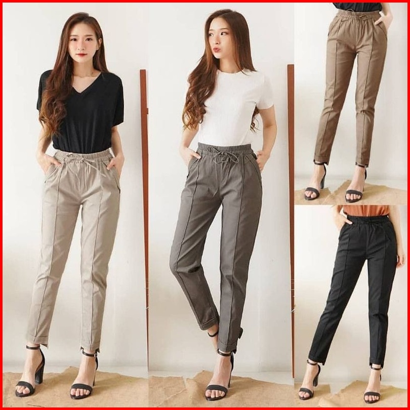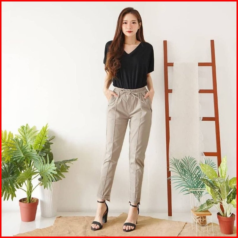 Celana Panjang Wanita Baggy Pants Twill Stretch Bisa Melar