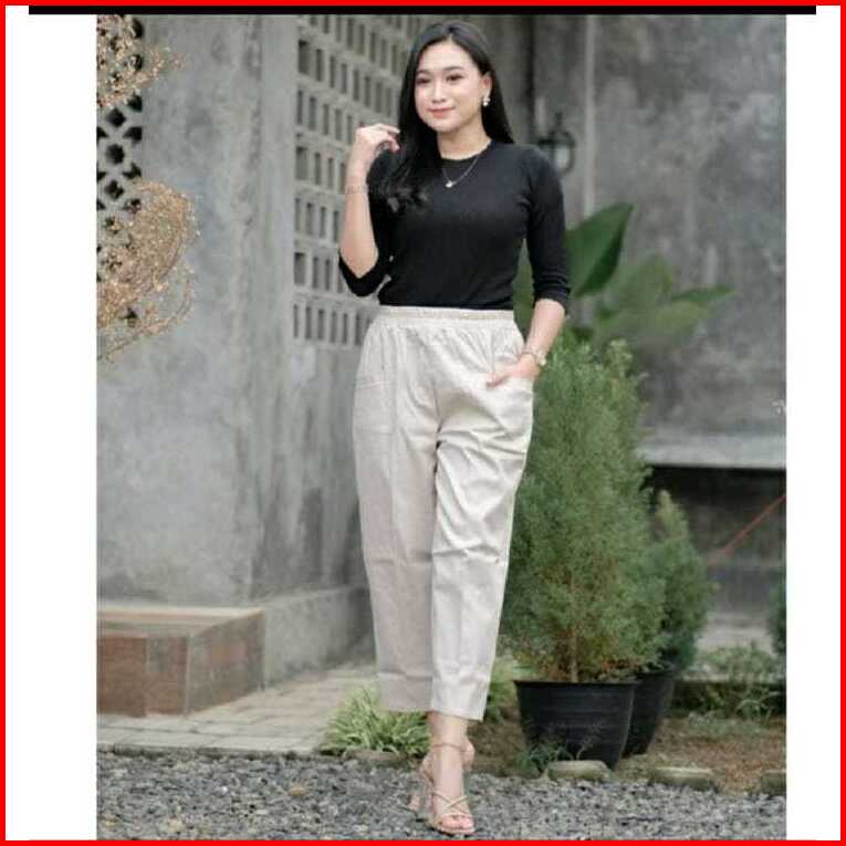 Celana Willow Pants Korean Style Wanita Celana Panjang Pants Casual Kekinian 7 8 Celana Crop Pants Jumbo Terbaru