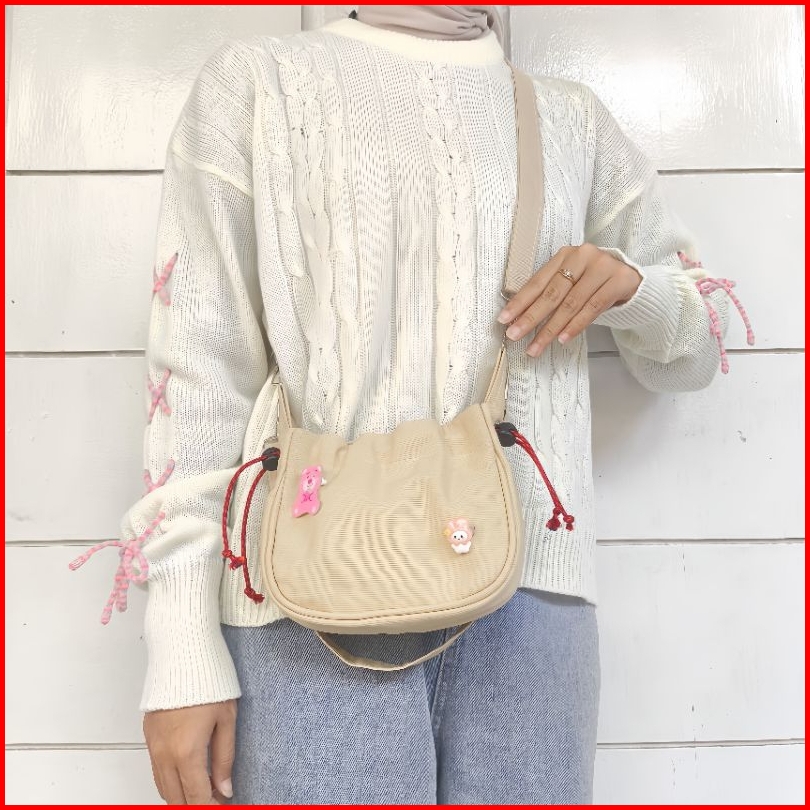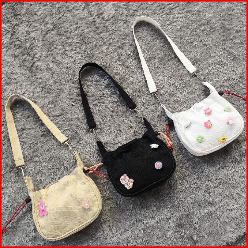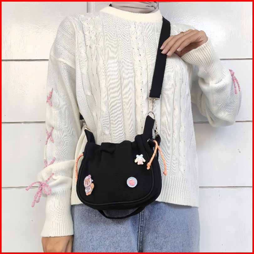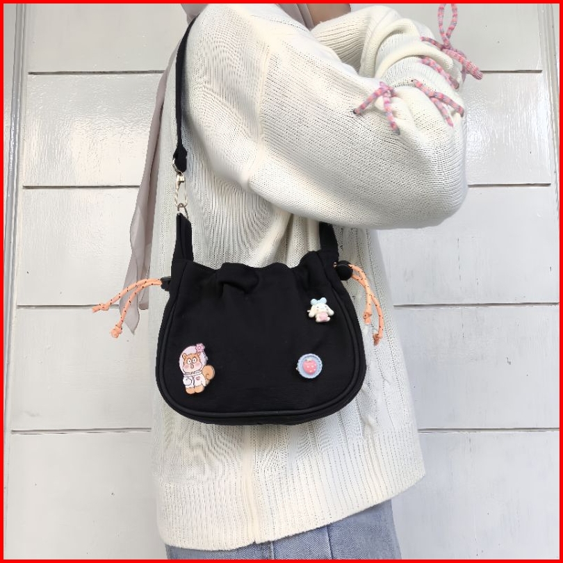 Villya Slingbag Shoulder Bag Tas Mini Serut Tas Kanvas Canvas Tas Bahu Tas Selempang Wanita