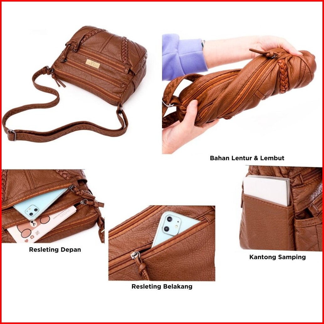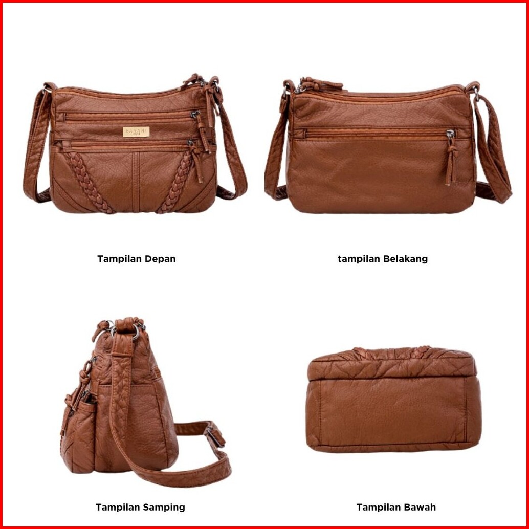 Hanami Tas Selempang Wanita Kulit Premium Shoulder Sling Bag Korea Cewek Coklat Hillmont Ta383b7