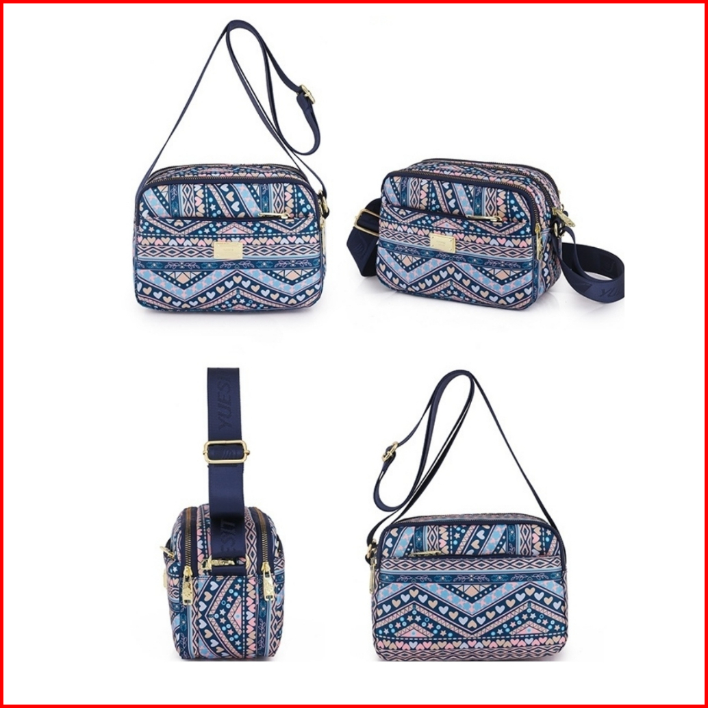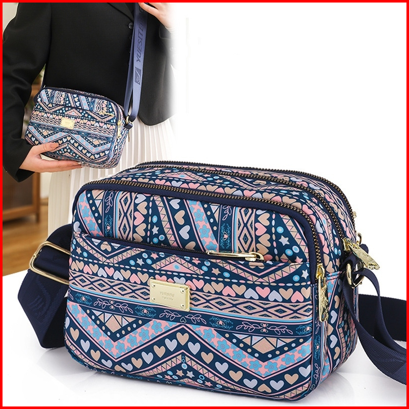 Tas Selempang Wanita Anti Air 3 Resleting Motif Unik Biru Gascona Ta840b3 Korea Kekinian Sling Bag Cewek Remaja Shoulder