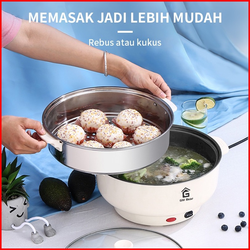 Gm Bear Panci Listrik Serbaguna 2 In 1 1225 - Electric Cooking Pot Free Steamer Stainless