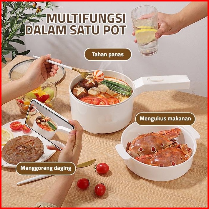 Panci Listrik Serbaguna 1.8 Liter Fry Pan Electric Penggorengan Kukus Rebus Memanas Sayuran Air Keramik Elektrik Gratis