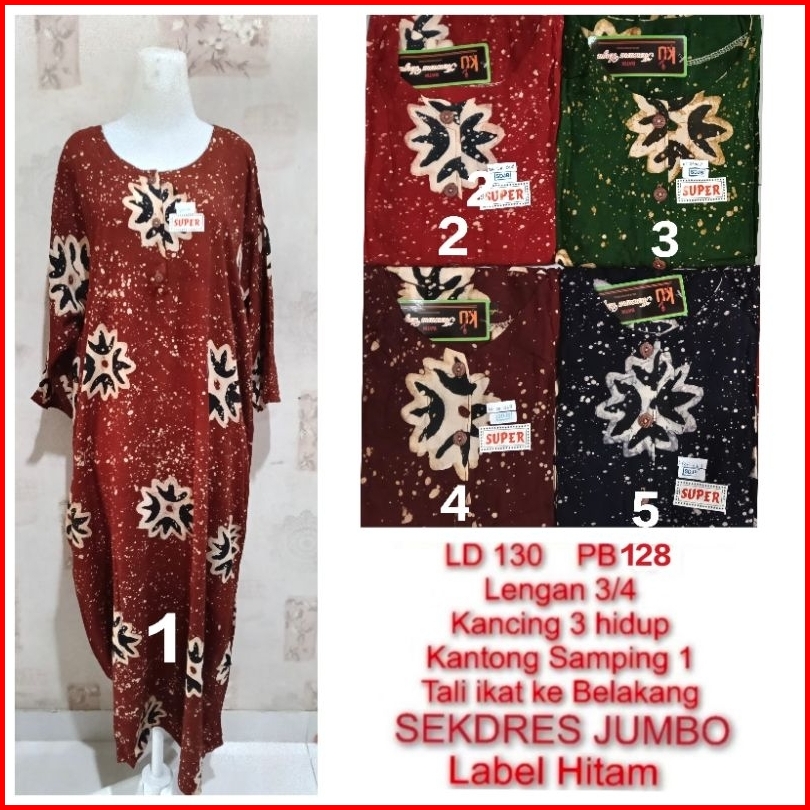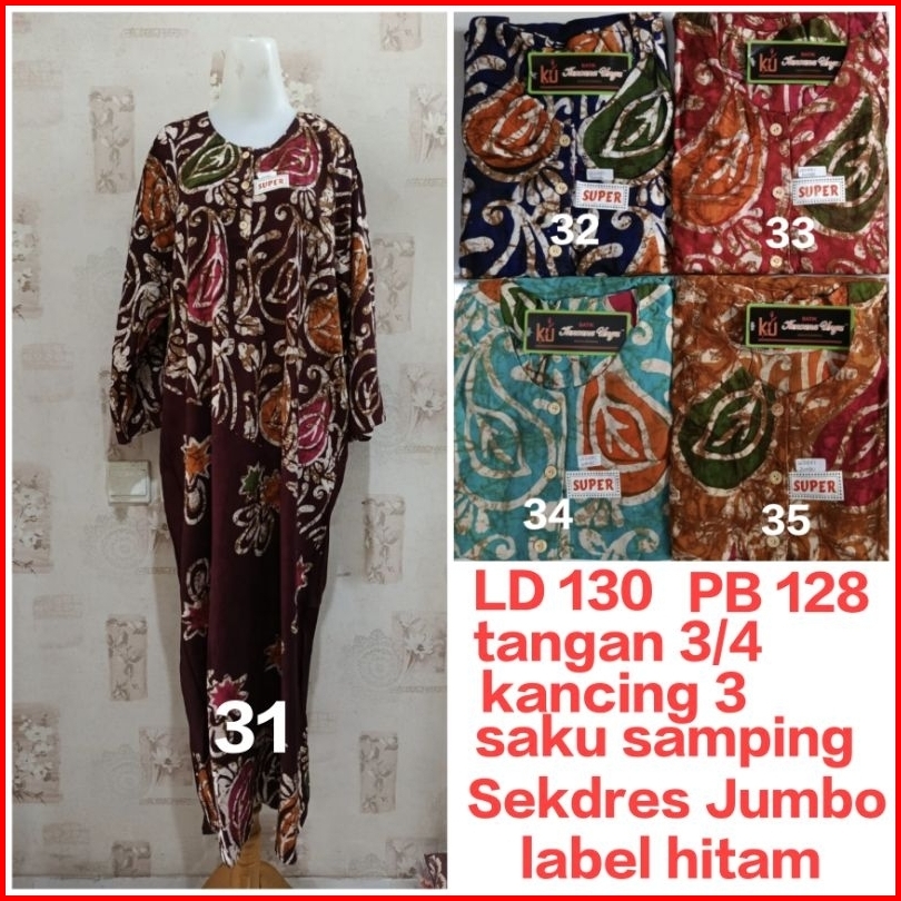 Longdres Sekdres Jumbo Kencana Ungu Ld 130 Cm Lengan 3 4 Label Hitam