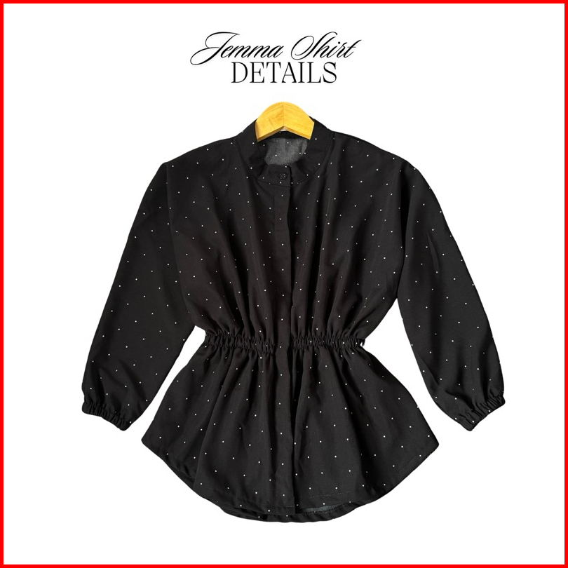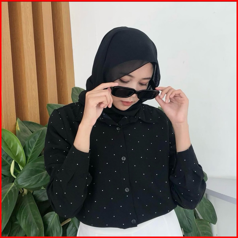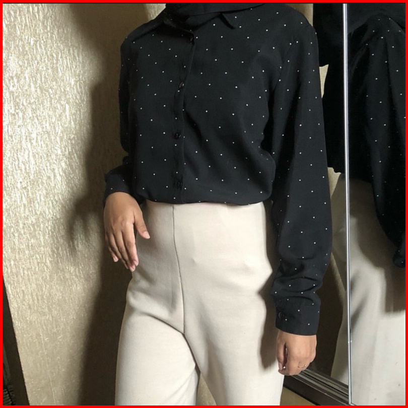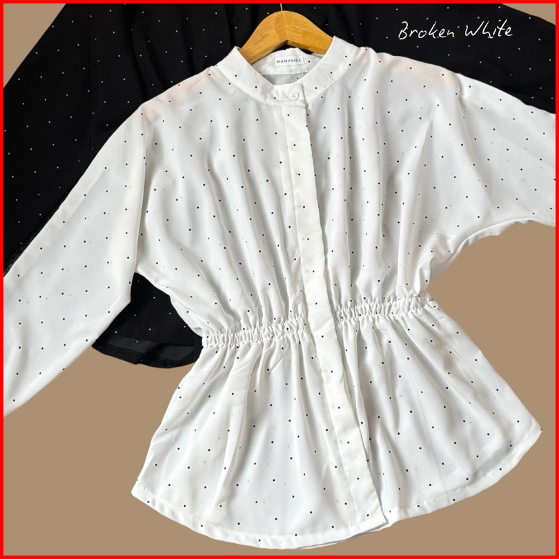 Kemeja Slimfit Black, BROKEN WHITE, Polka Shirt XL