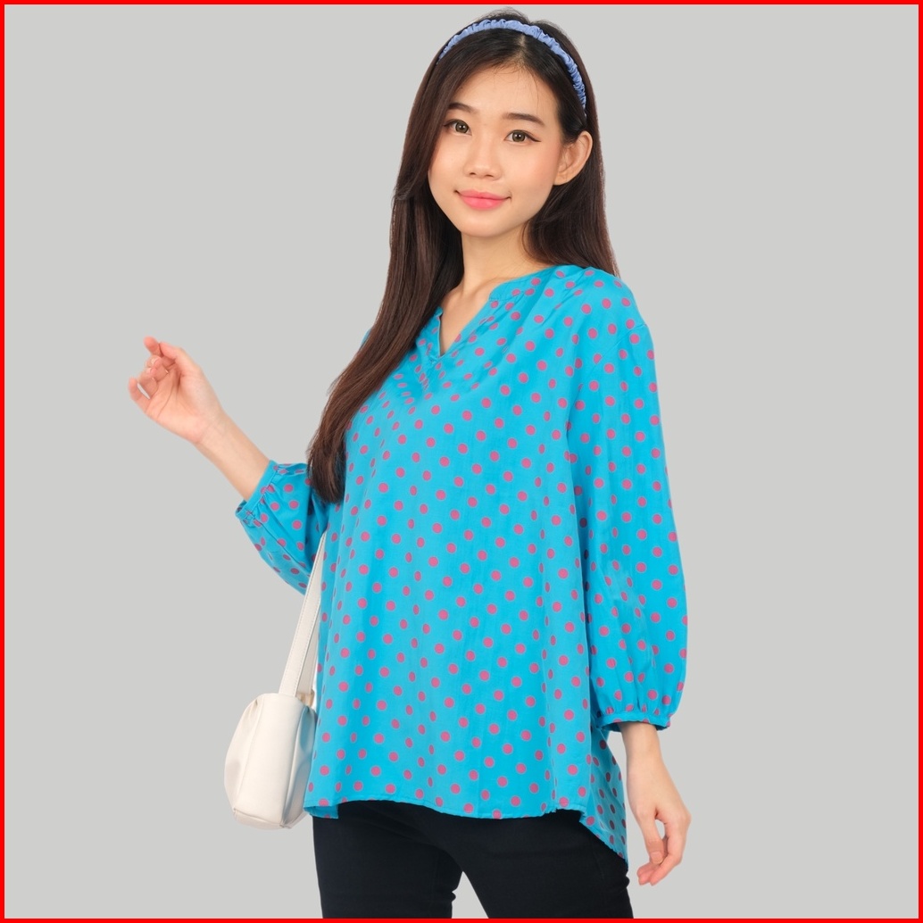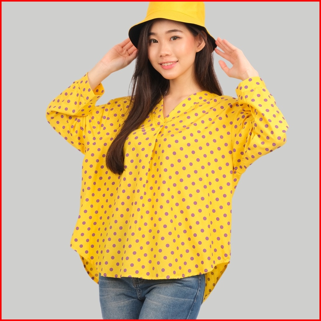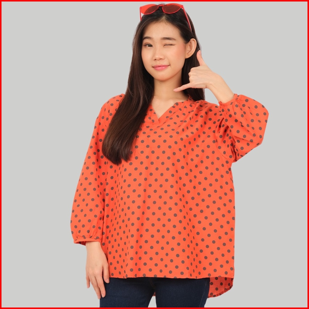 Monellina 501132 Blouse Oversize Wanita Lengan Panjang Polkadot