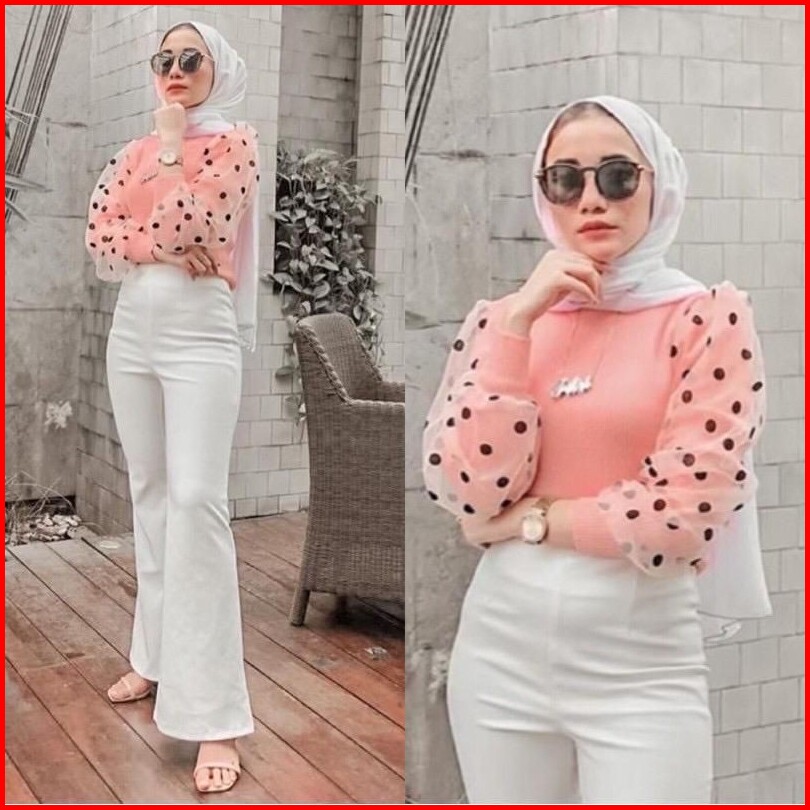C597 Atasan Blouse Wanita Rajut Polky Polkadot Lace Fsc597 Import
