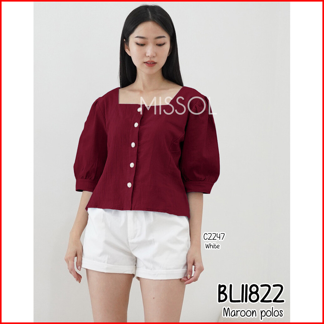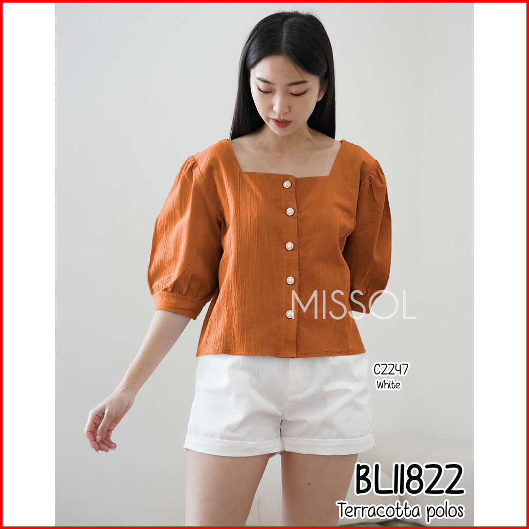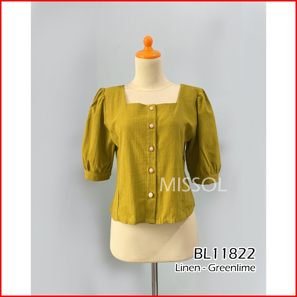 Missol Atasan Linen Wanita Polos Lengan Balon Korean Style Bl11822 11822