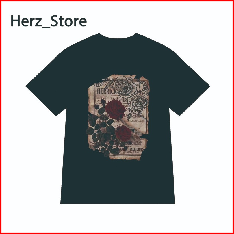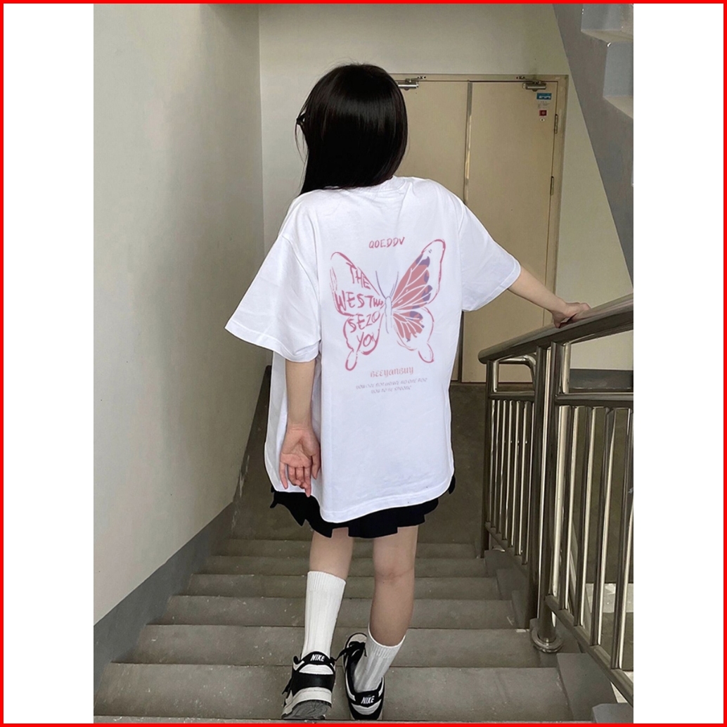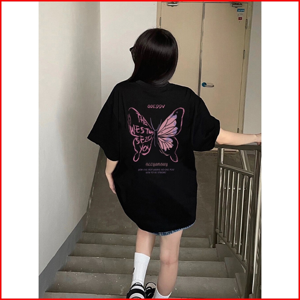 Kaos Butterfly Wanita Korea Style T Shirt Lengan Pendek Hitam Print Baju Wanita Oversize Atasan Cetak Populer Retro Tee