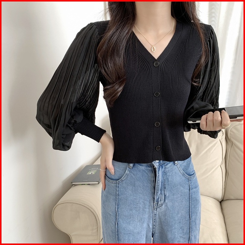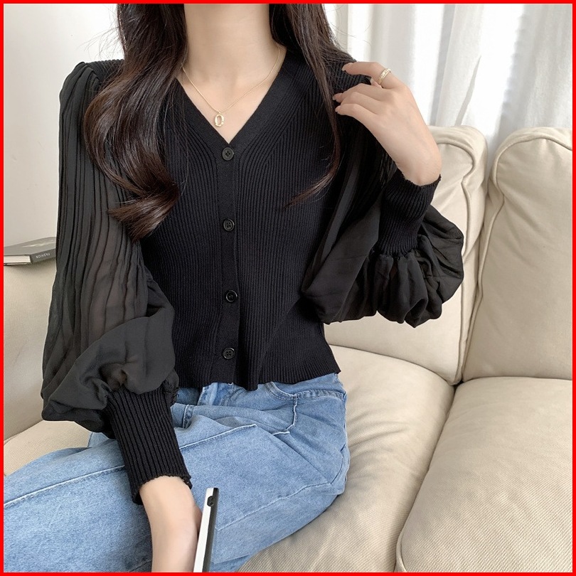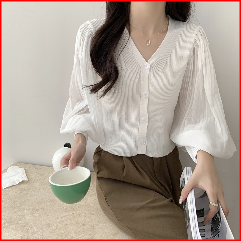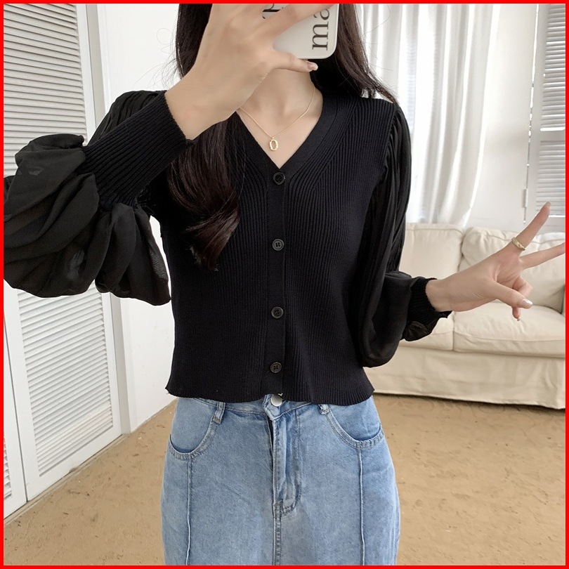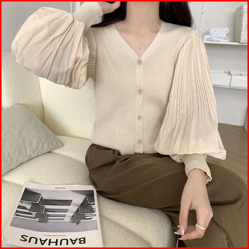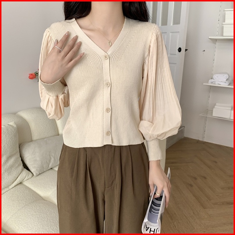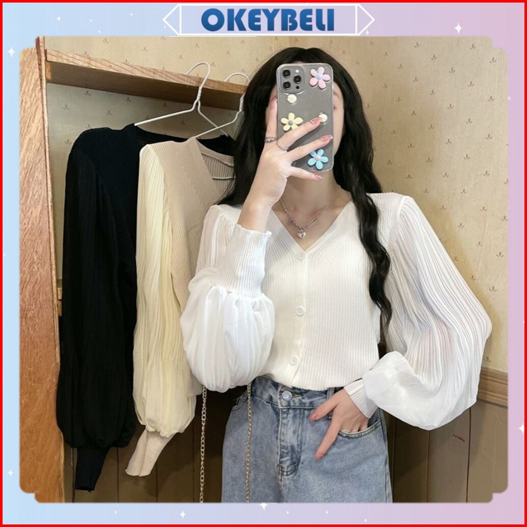 Okey Belibj1595 Baju Atasan Sweater Knit Korean Style Wanita Import Rajut Lengan Panjang Balon