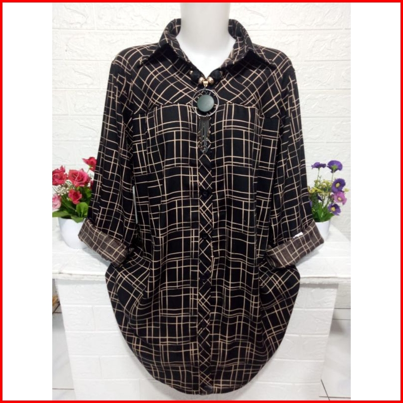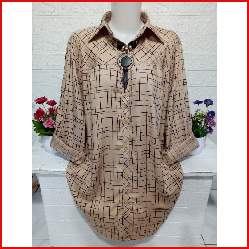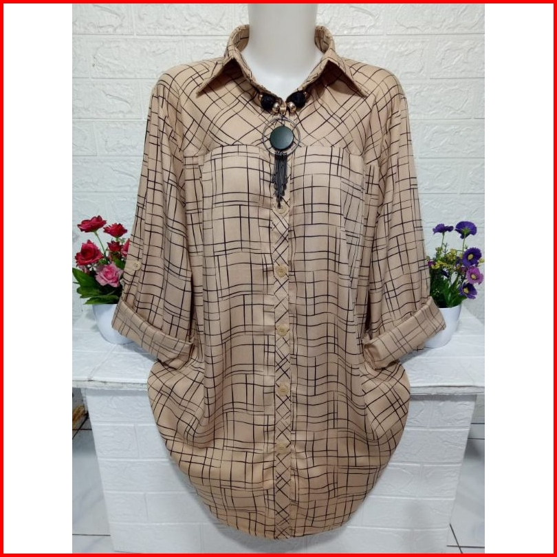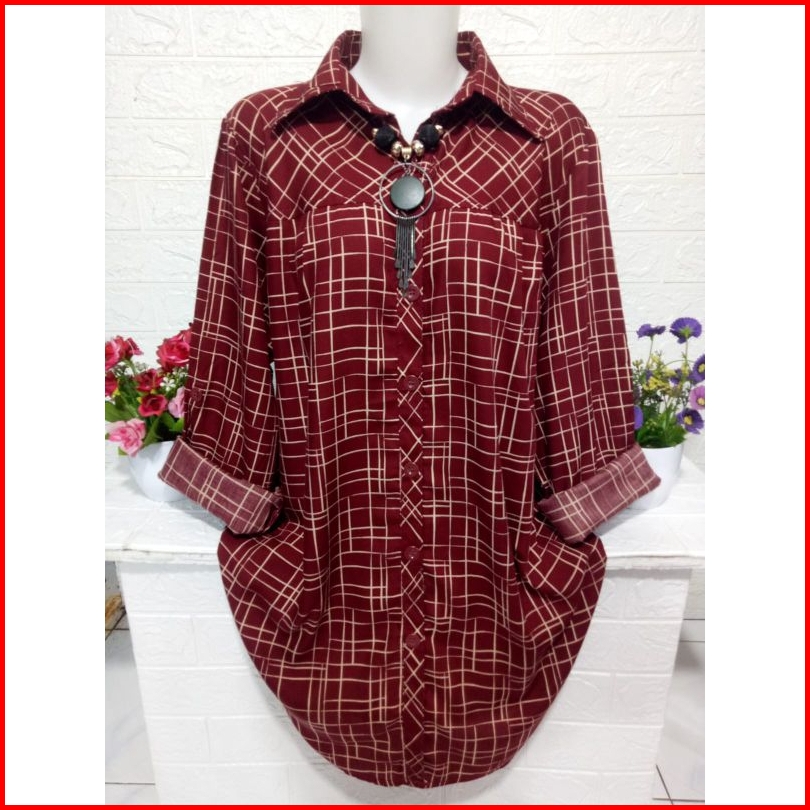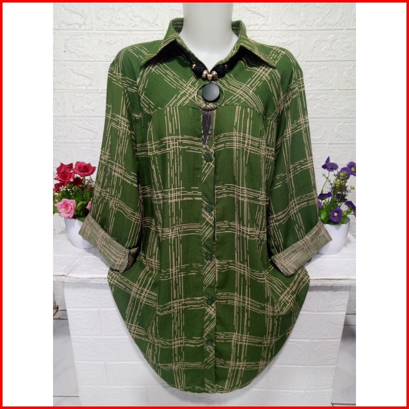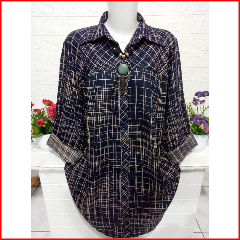 Baju Atasan Kemeja Wanita Corak Kombinasi Motif Bunga Bahan Adem Lengan Panjang A342