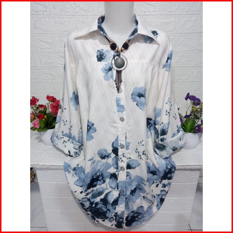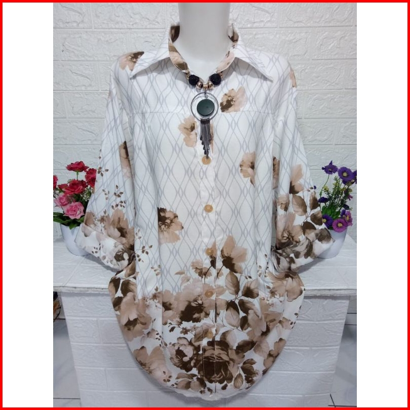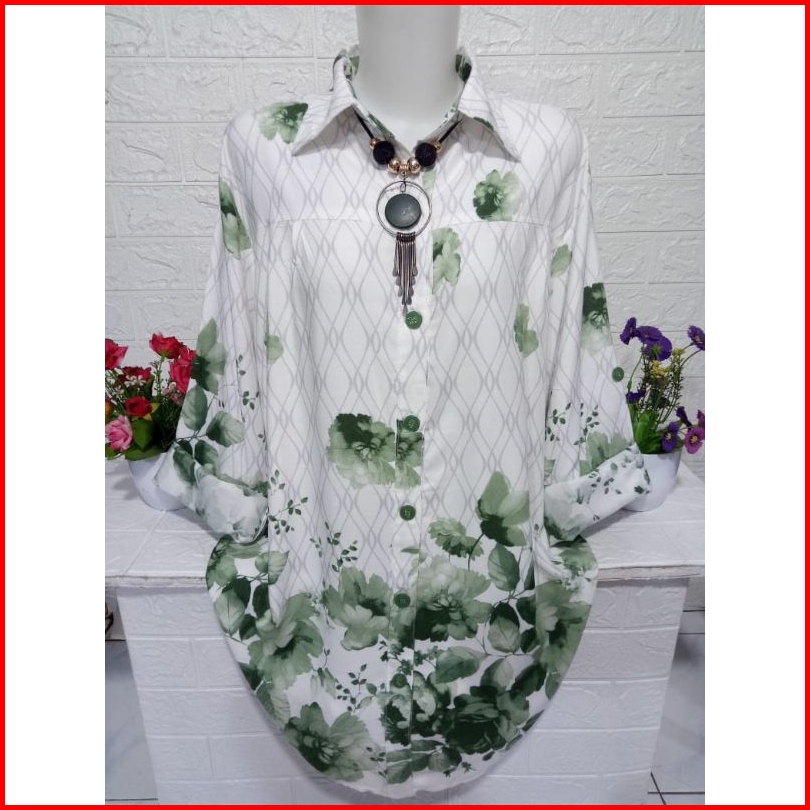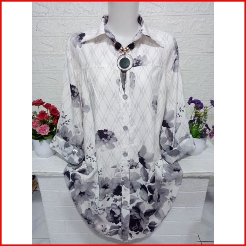 Kemeja Motif Kekinian Baju Wanita Atasan Cewek Tangan Panjang Bahan Rayon Adem Berkualitas A356