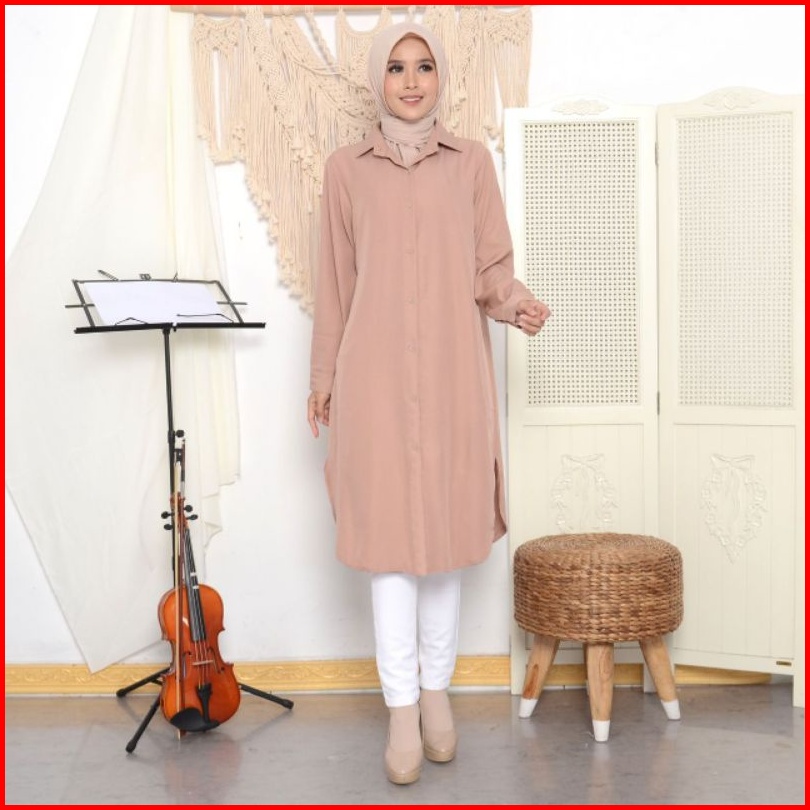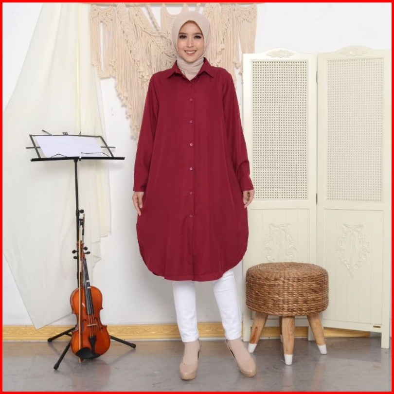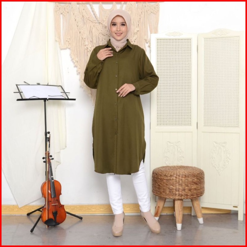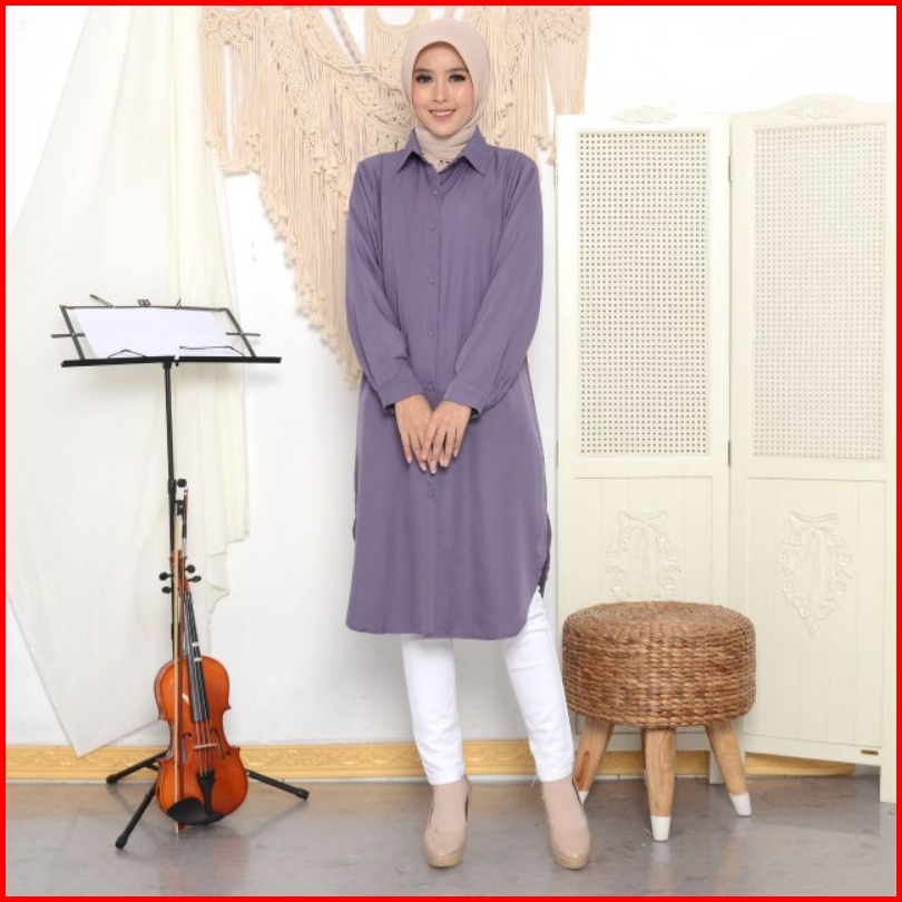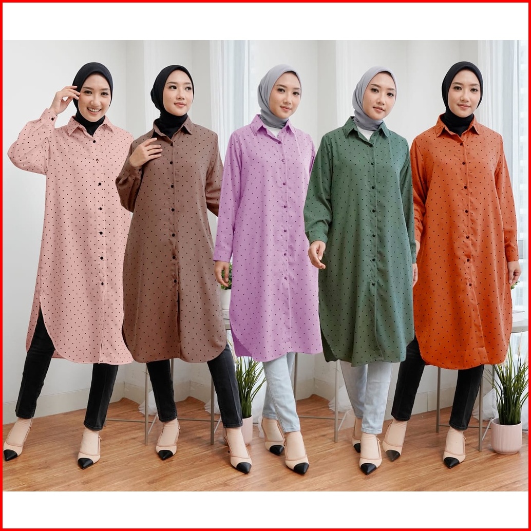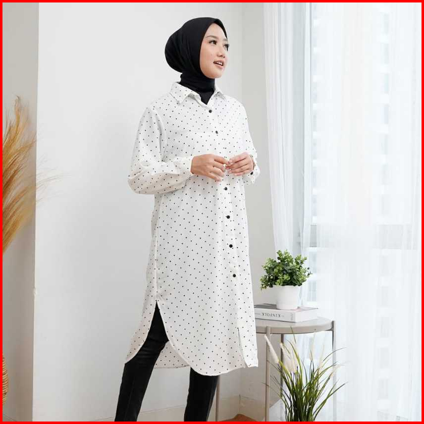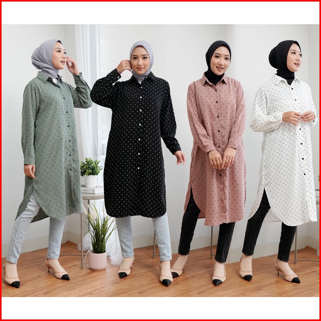 Atasan Long Tunik Polkadot Kecil Wanita Tunik Busui Muslim Kekinian Kaki Bulat Shakila Premium