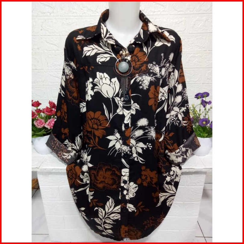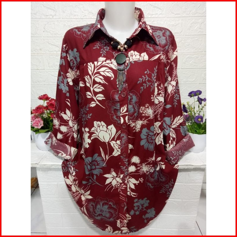 Atasan Hem Wanita Baju Kemeja Cewek Tangan Panjang Motif Kekinian A399h