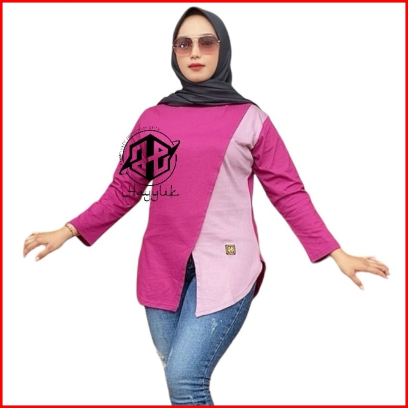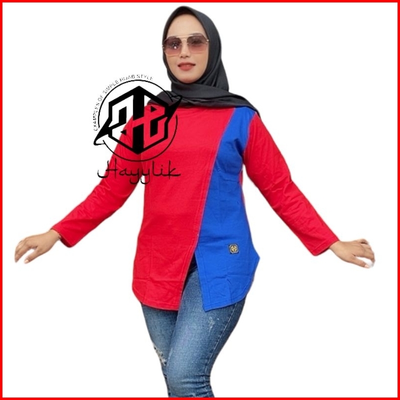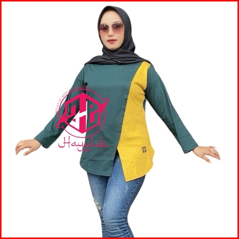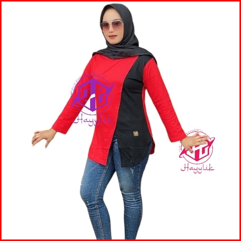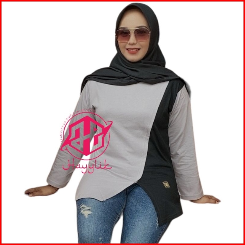 Jaya Fashion Top Kaos Wanita Hayylik Silang Terbaru Katun Combet Adem
