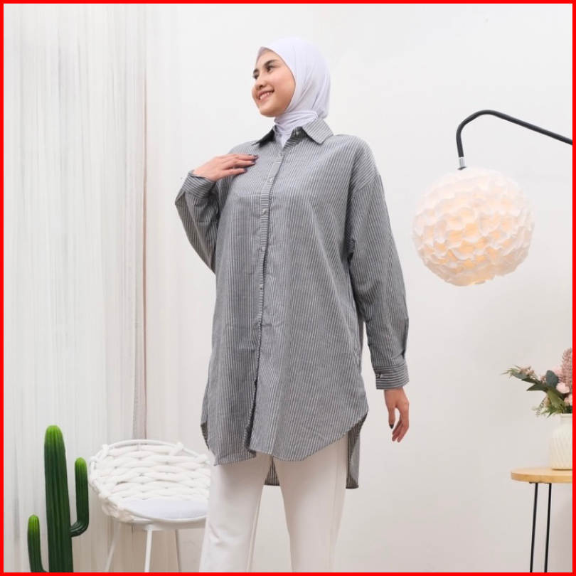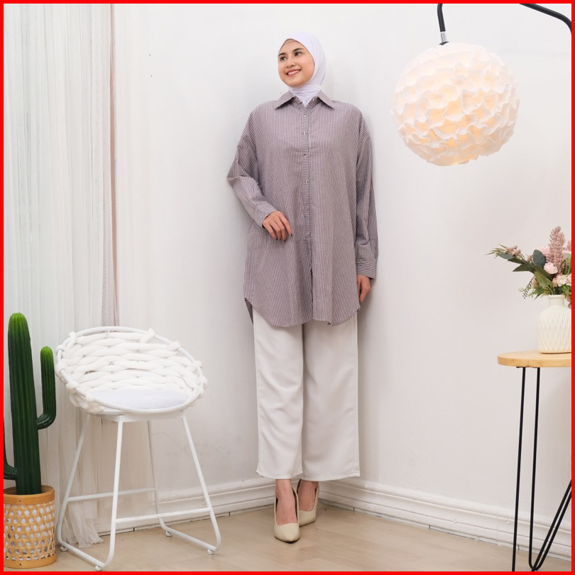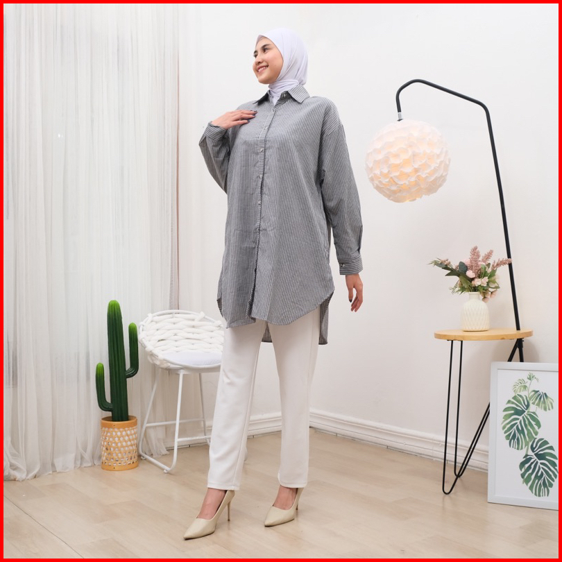 Newladiessa Tunik Oversize Motif Salur Atasan Wanita Tunik Wanita