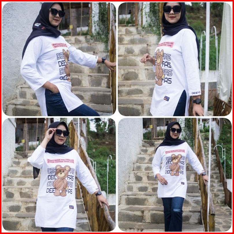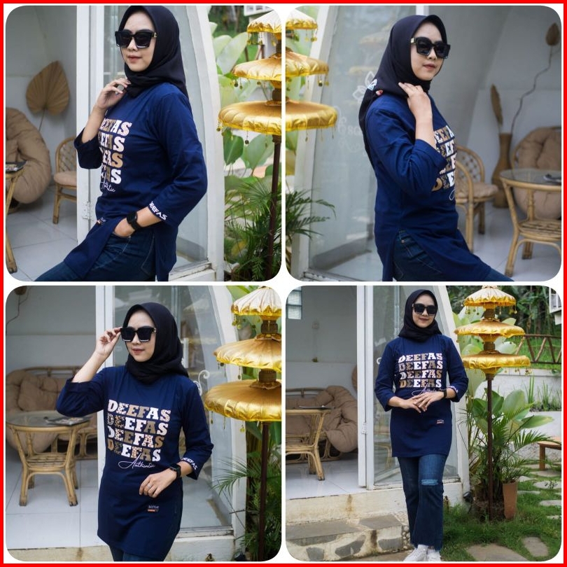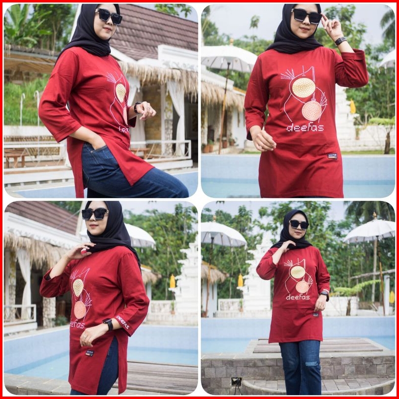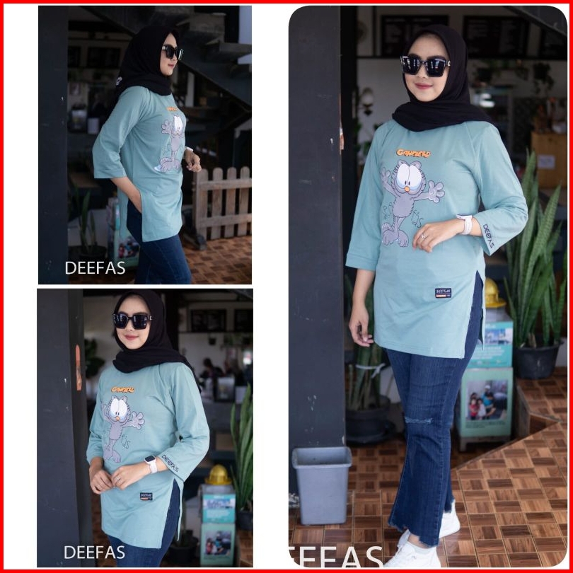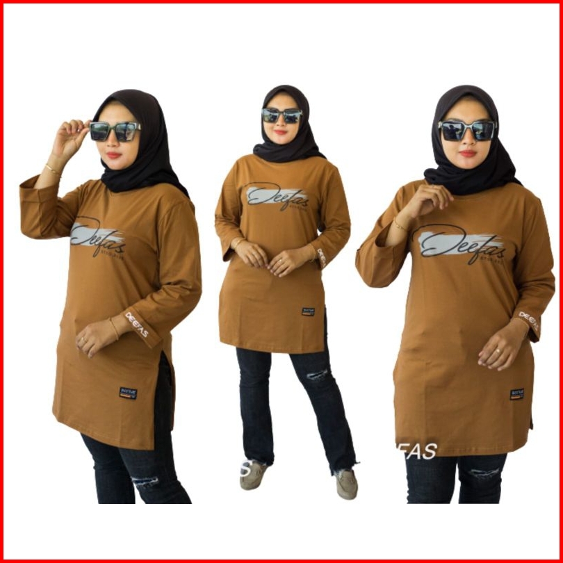 Tunik Stik Balik 05 Jumbo Kaos Cewe Terlaris Kaos Wanita Lengan 7 8 Jahitan Belah Pinggir Bahan Katun Kombet 20s