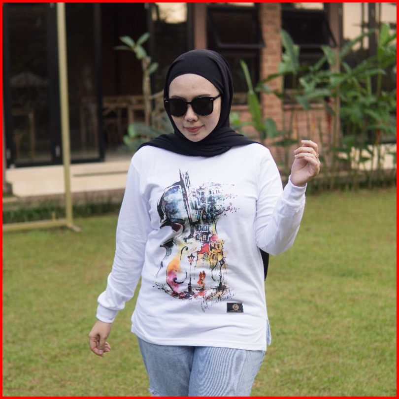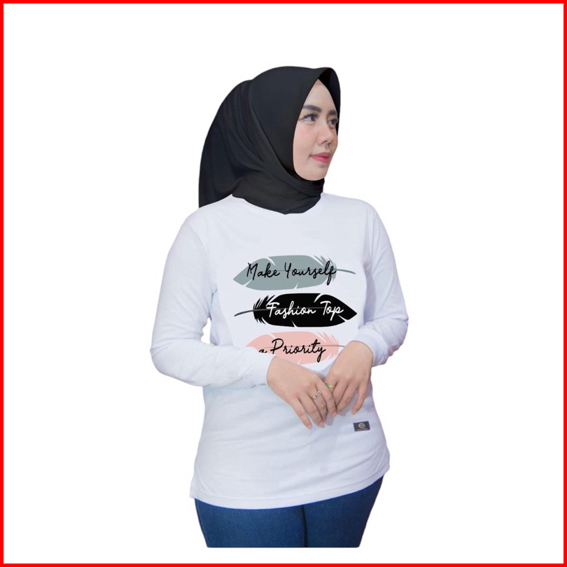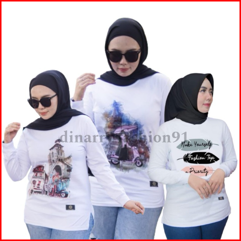 Kaos Putih Polos Kaos Wanita Jumbo Kaos Lengan Panjang Dinarry Hijab Style