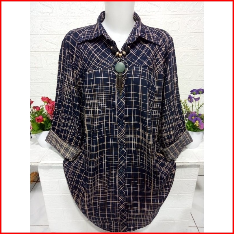 Kemeja Atasan Wanita Bahan Adem Lengan Panjang Motif Kekinian A1763r