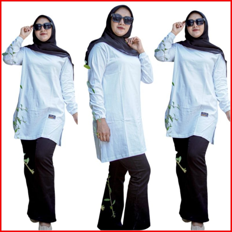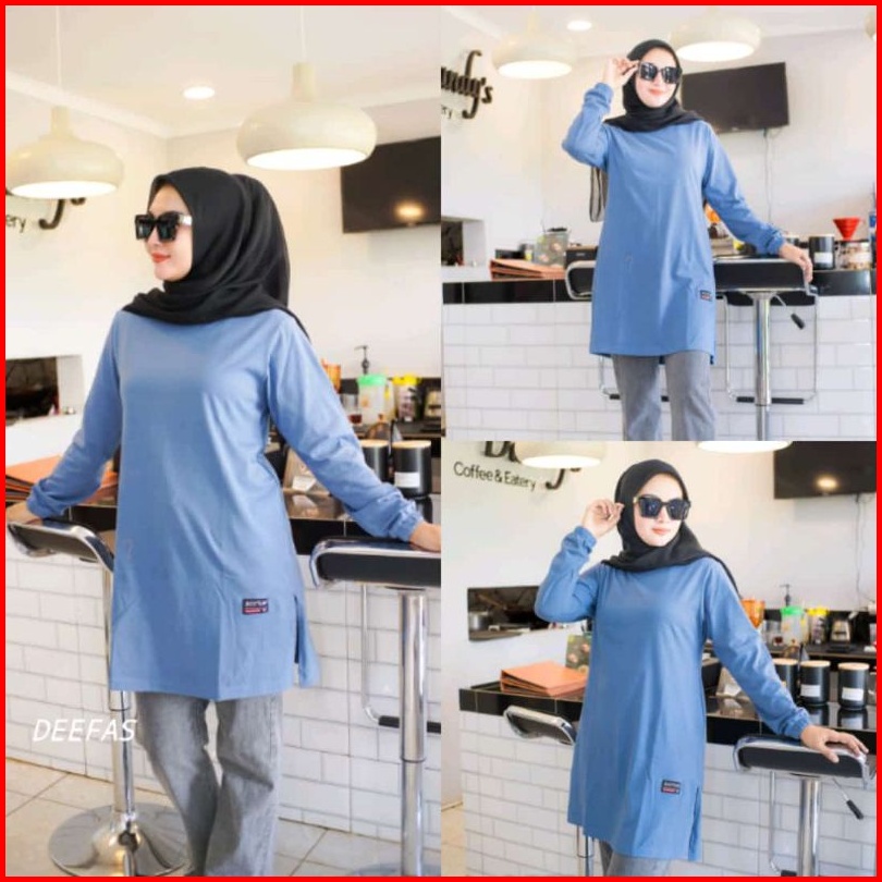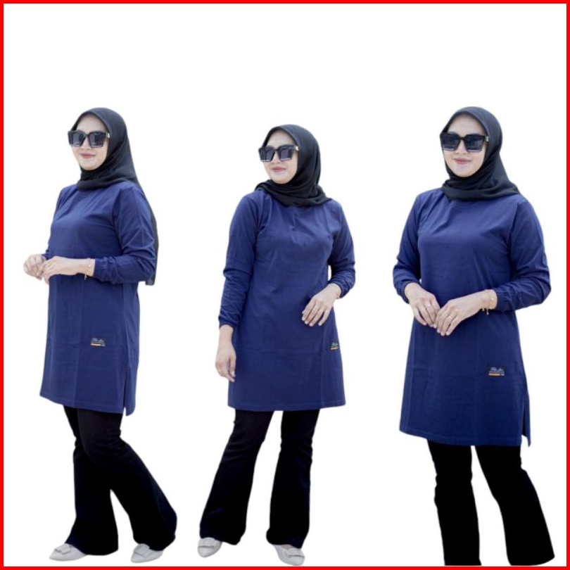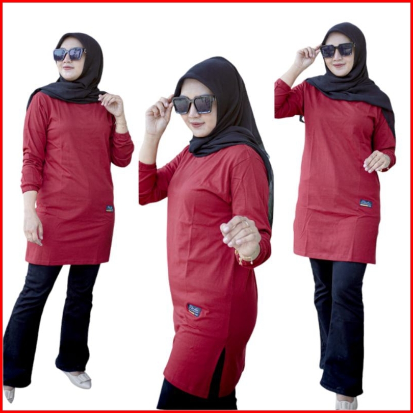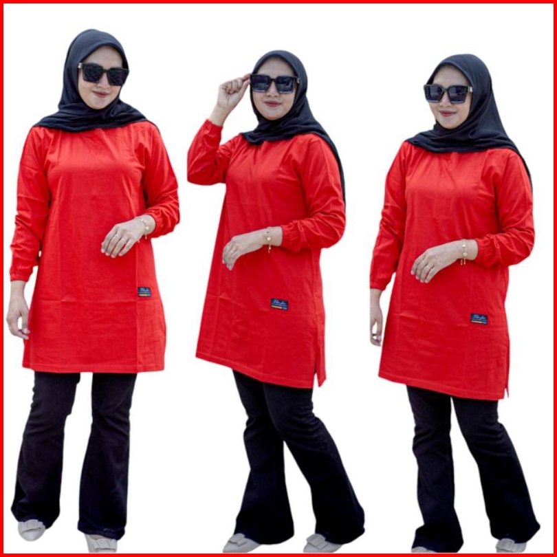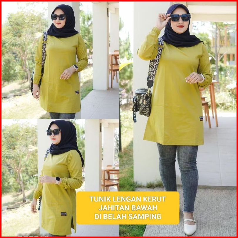 Tunik Polos 01a Wanita Lengan Panjang Tangan Kerut Pake Karet Bahan Katun Kombet 20s