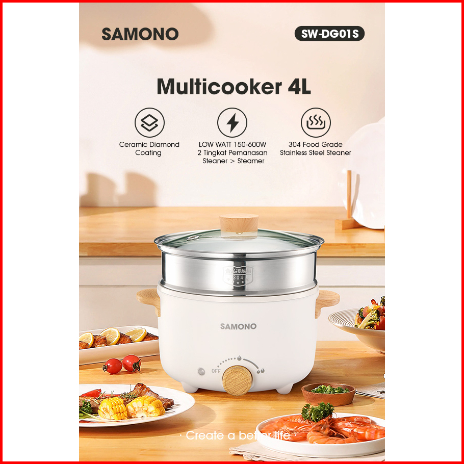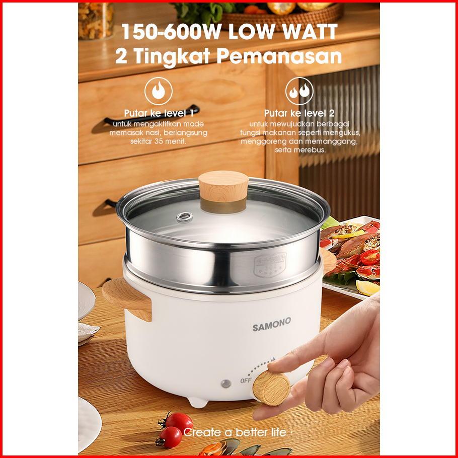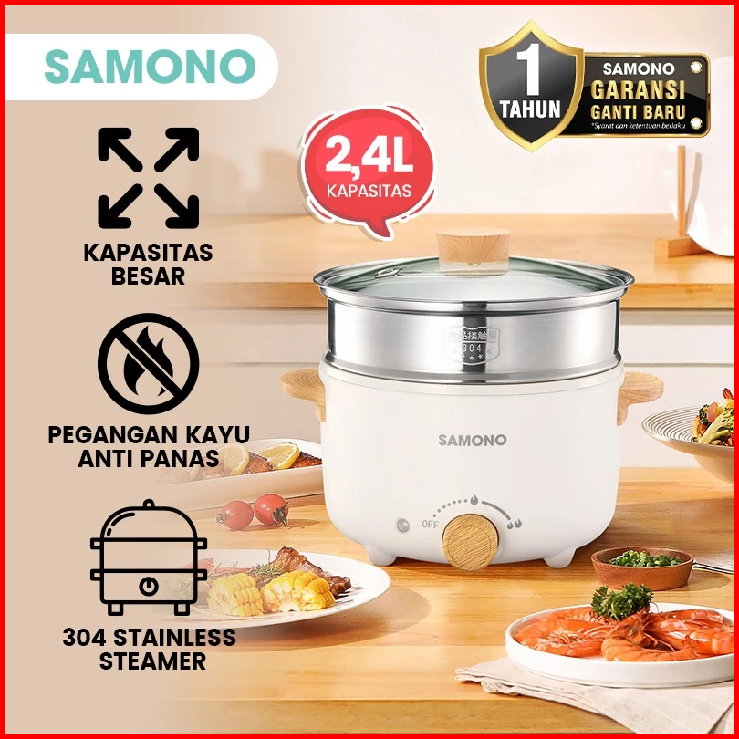 Samono Panci Listrik 2 4 L 1 6 L Liter Fry Pan Teflon Keramik Kukusan Stainless Serbaguna Low Watt Garansi 1 Tahun - Sw-