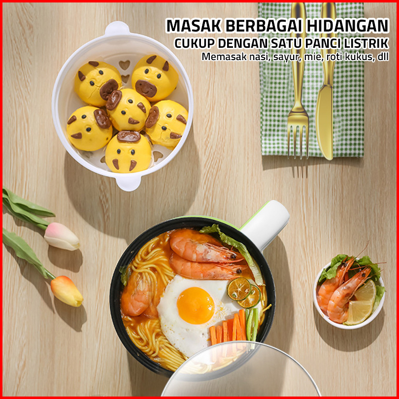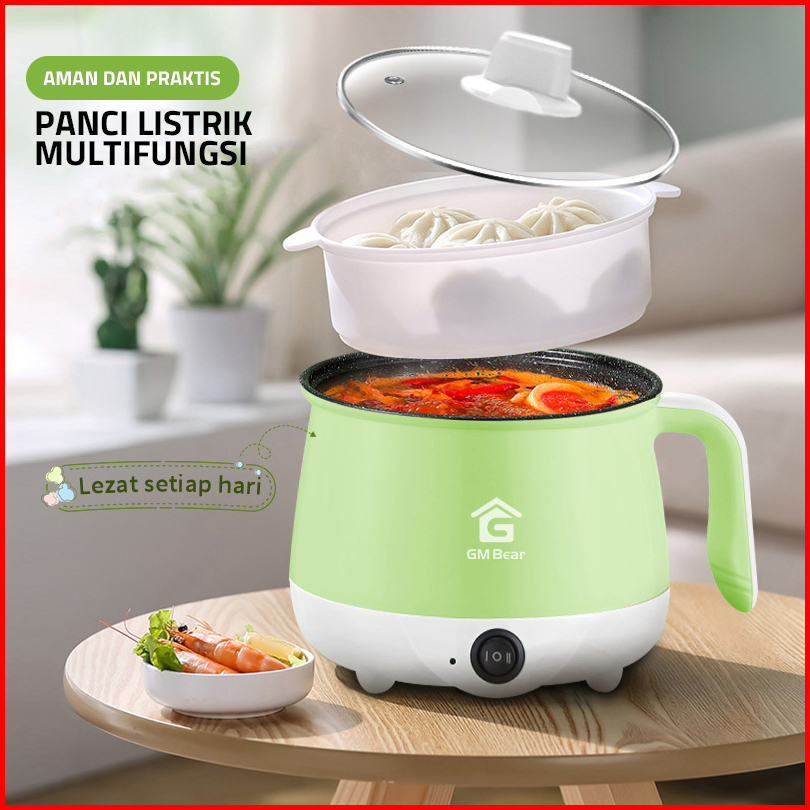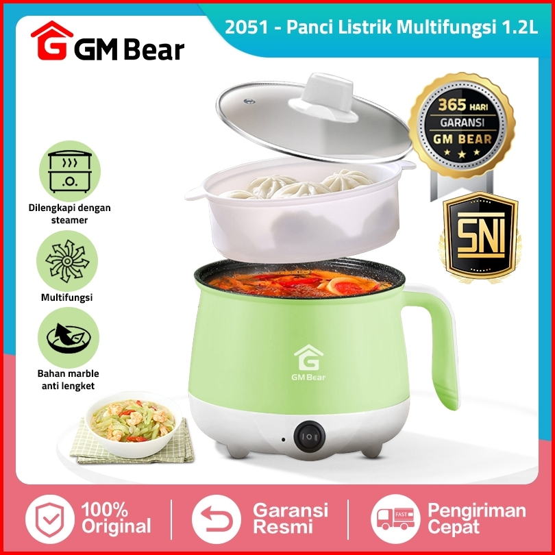 Gm Bear Panci Listrik 2in1 2051 - Panci Penggorengan Keramik Elektrik Free Steamer