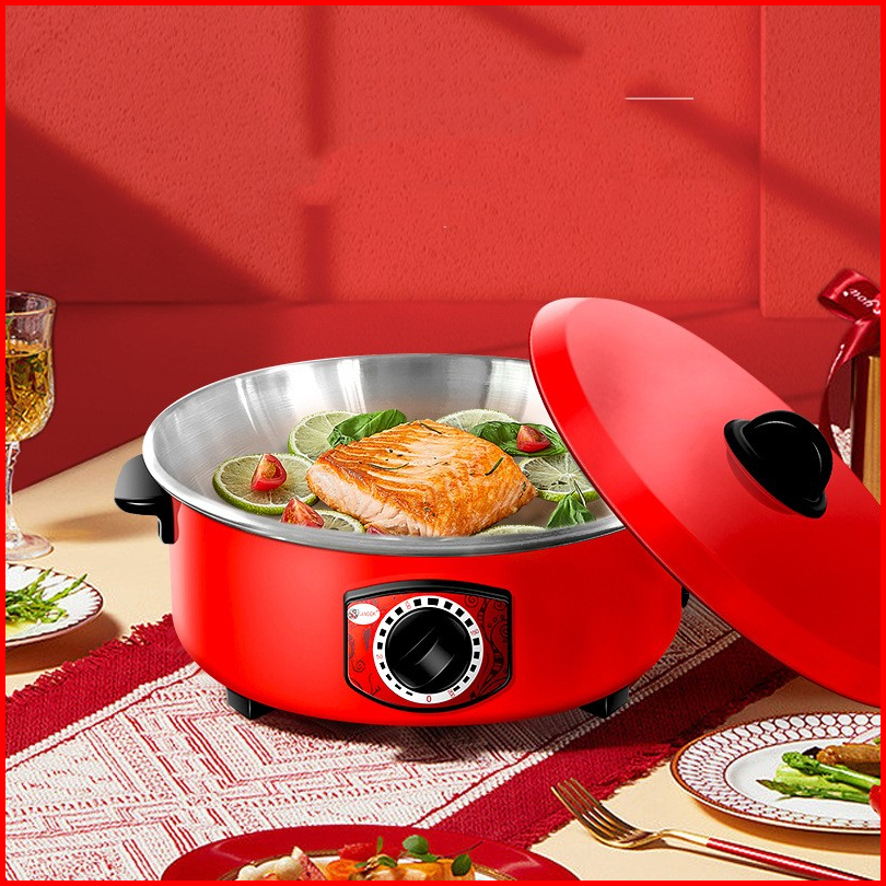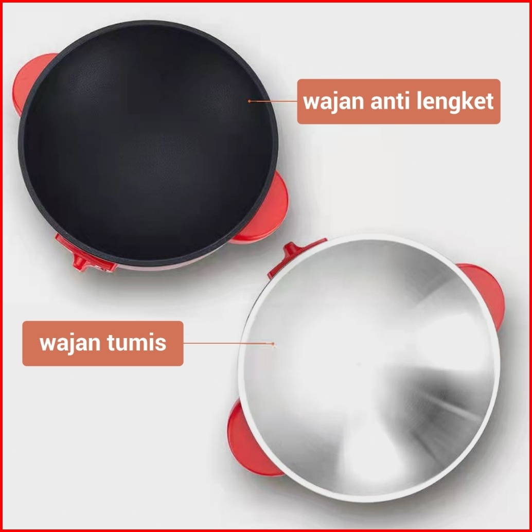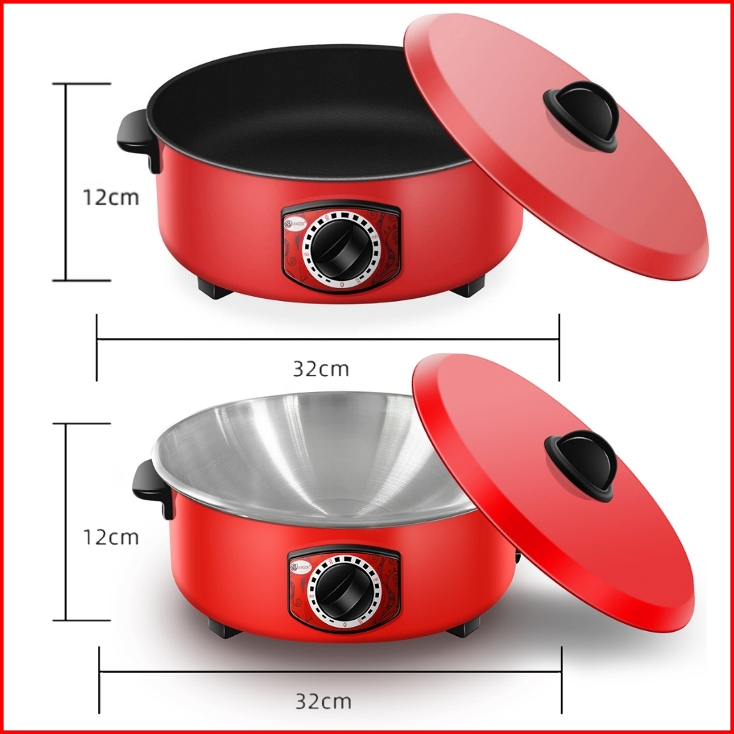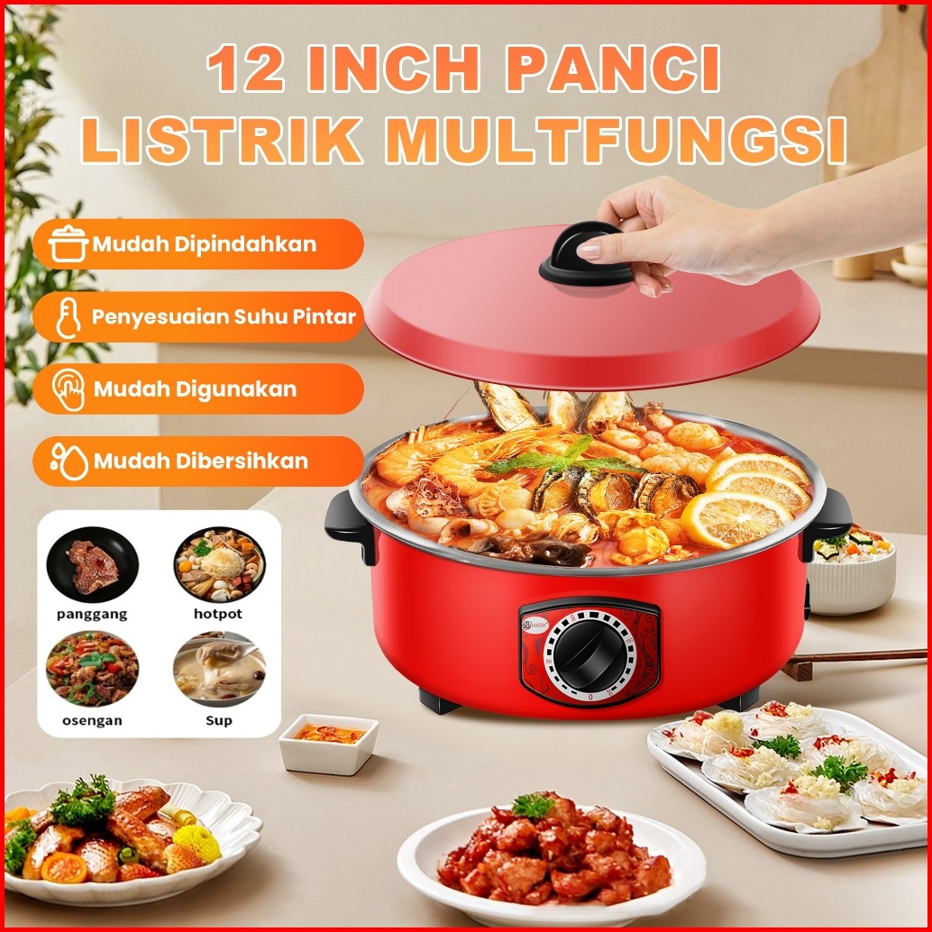 12 Inch Panci Listrik Multifungsi Wajan Listrik Besar Jumbo Serbaguna Anti Lengket 3 In 1 Teflon