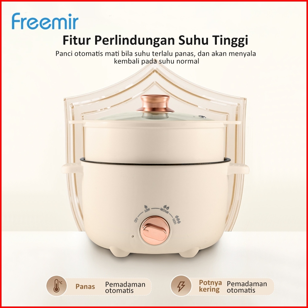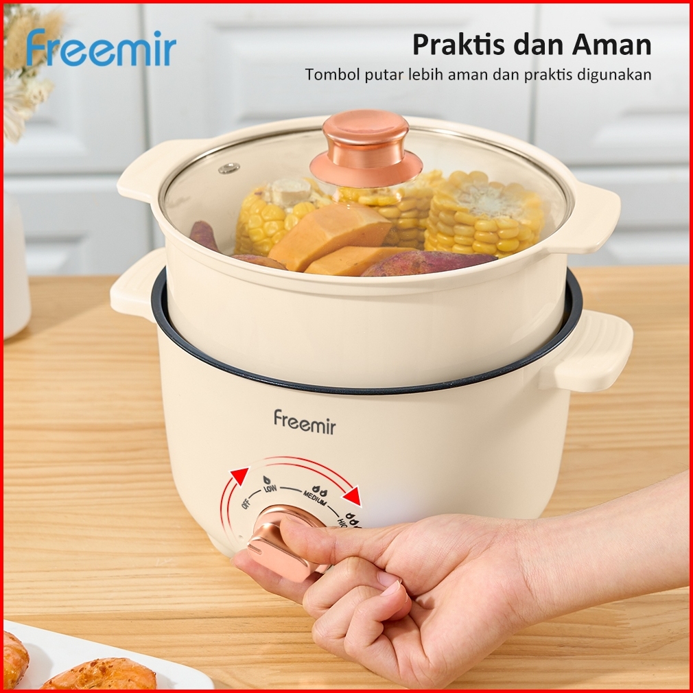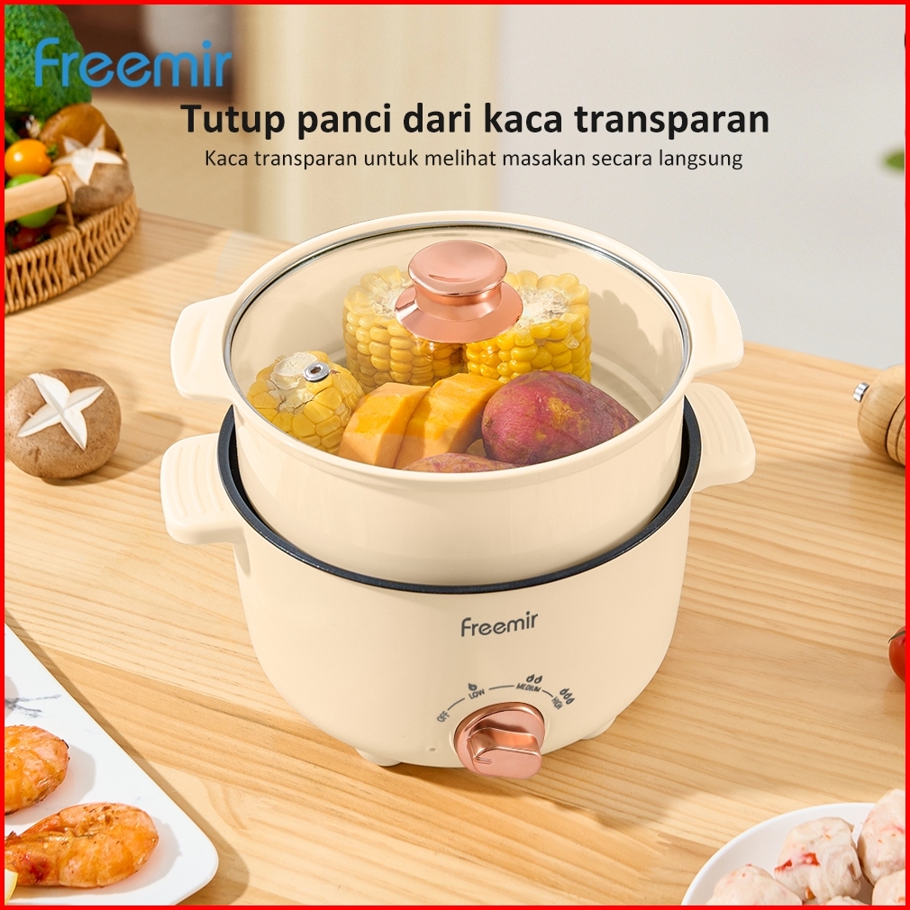 New Freemir Panci Listrik Elektrik 20 24 Cm Dengan Pengukus Anti Lengket Tutup Kaca