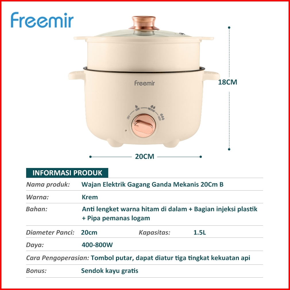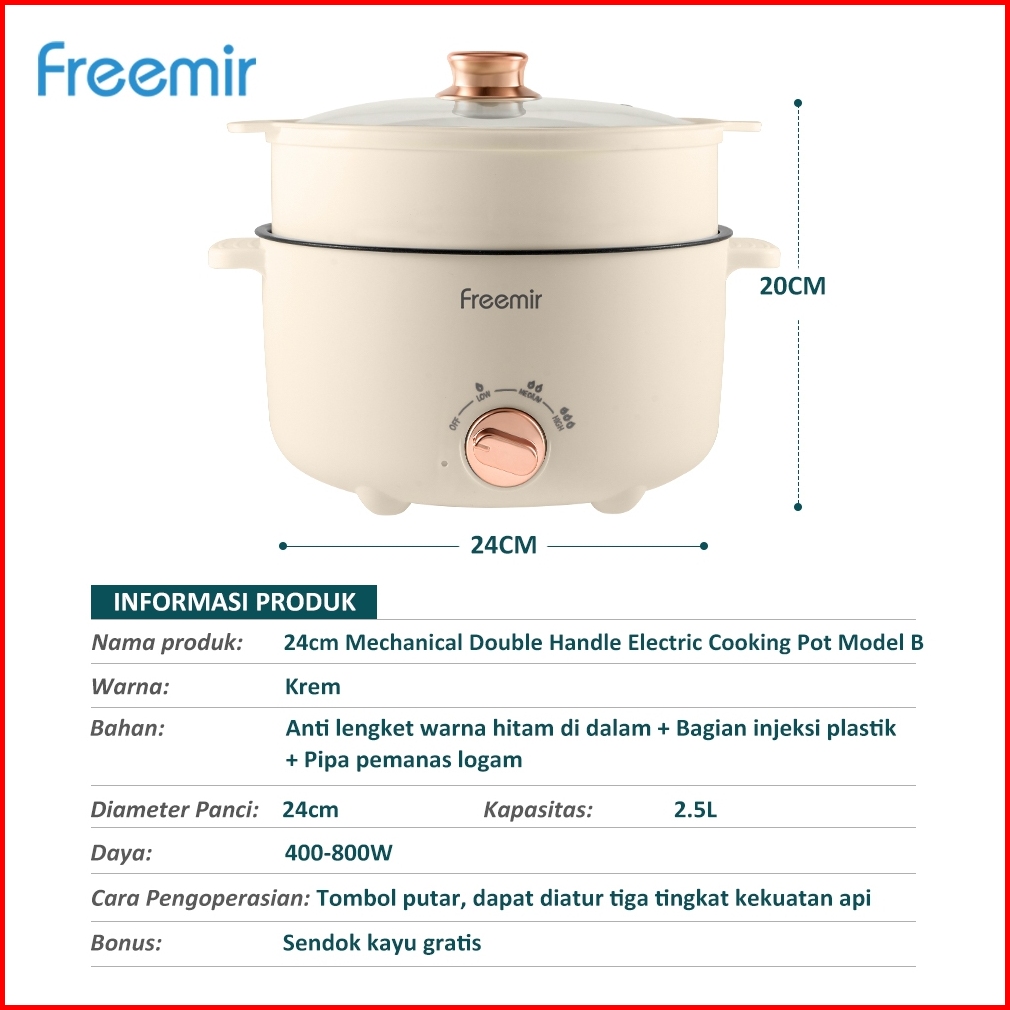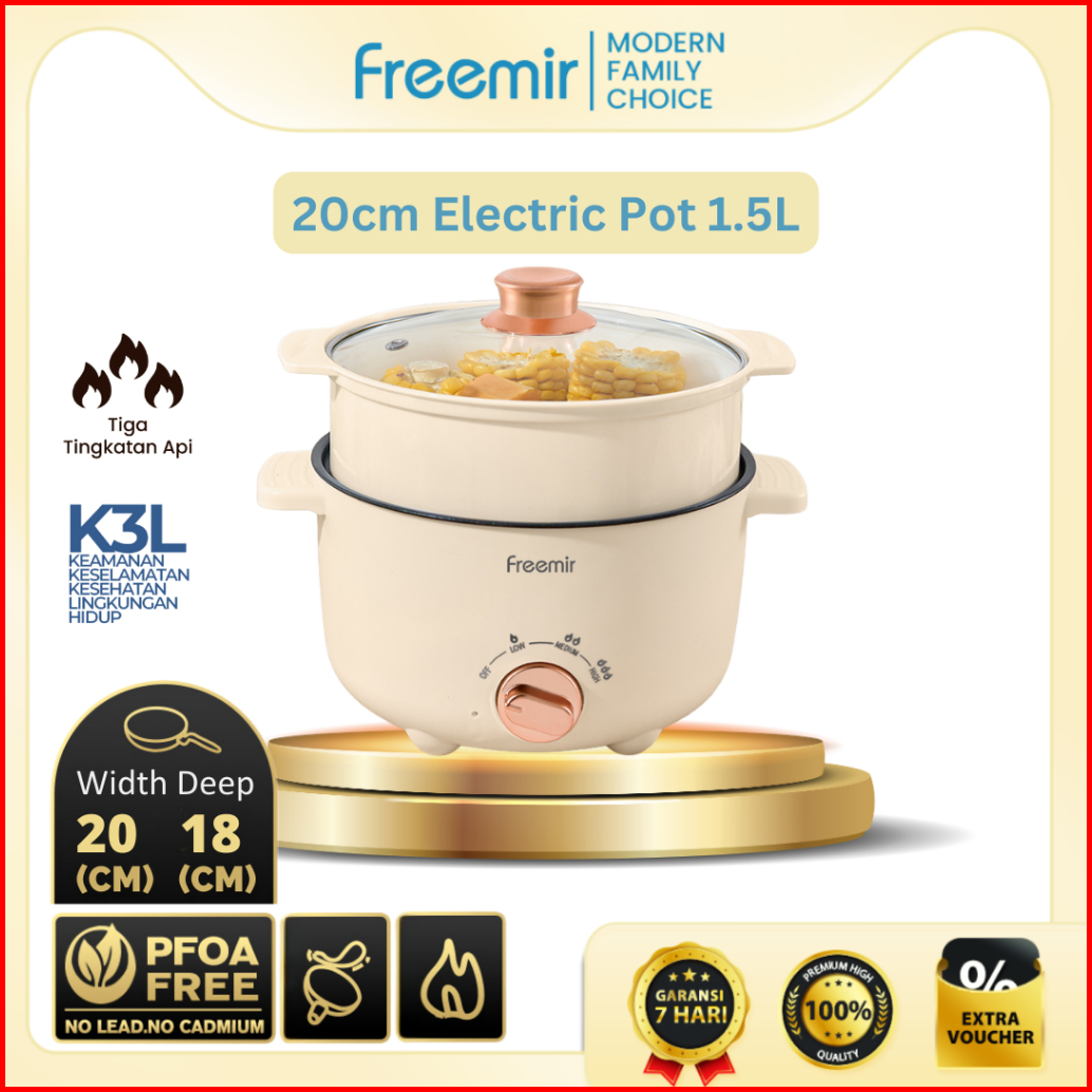 New Freemir Panci Listrik Elektrik 20 24 Cm Dengan Pengukus Anti Lengket Tutup Kaca