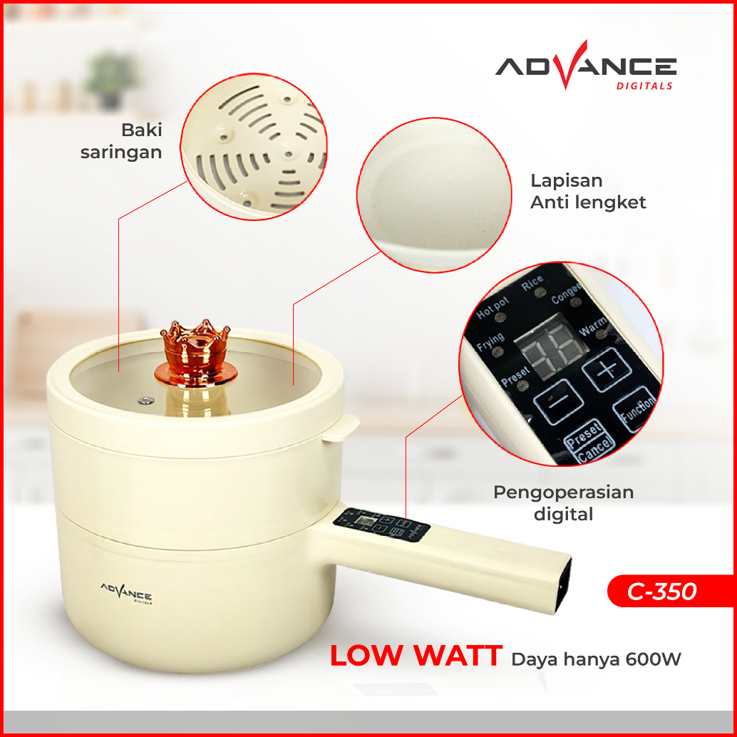 Ready Stockadvance C350 C-350 Panci Listrik Alat Serbaguna Pan Electric Cooker Serbaguna Garansi Resmi 1 Tahun