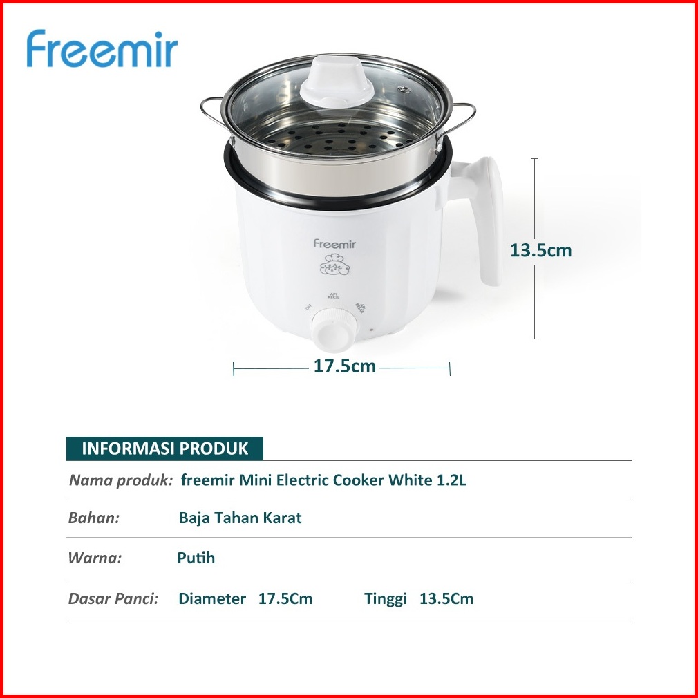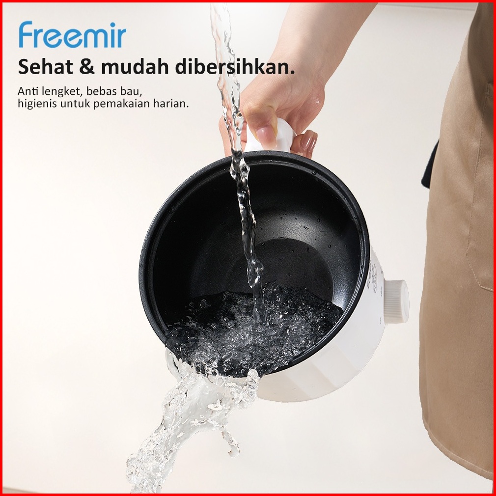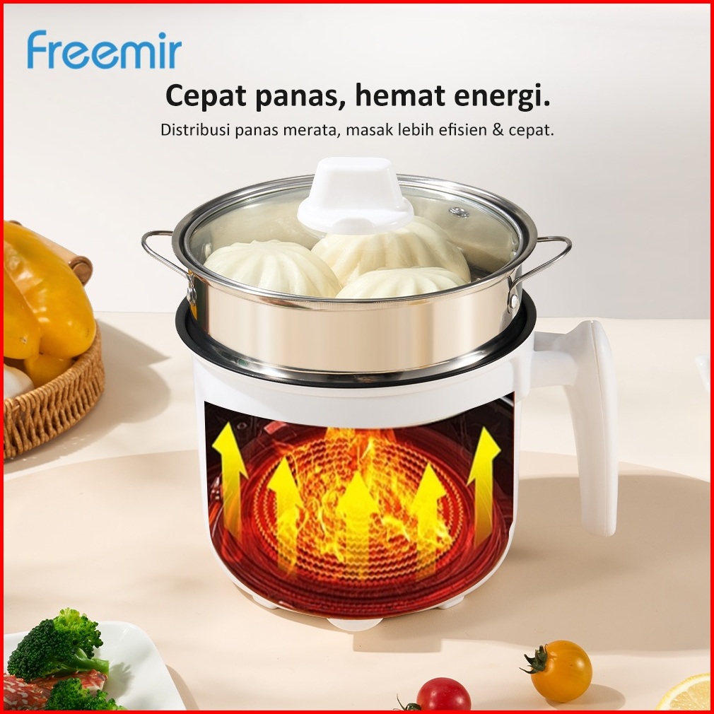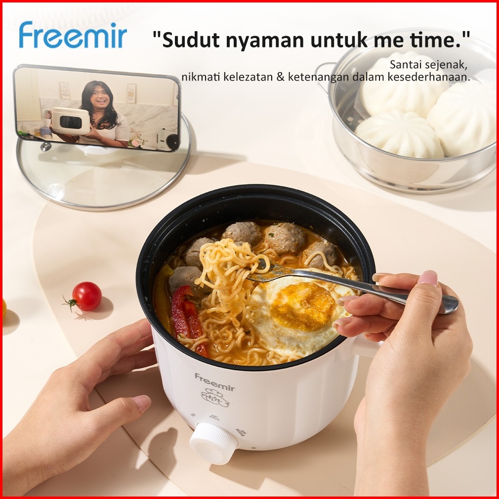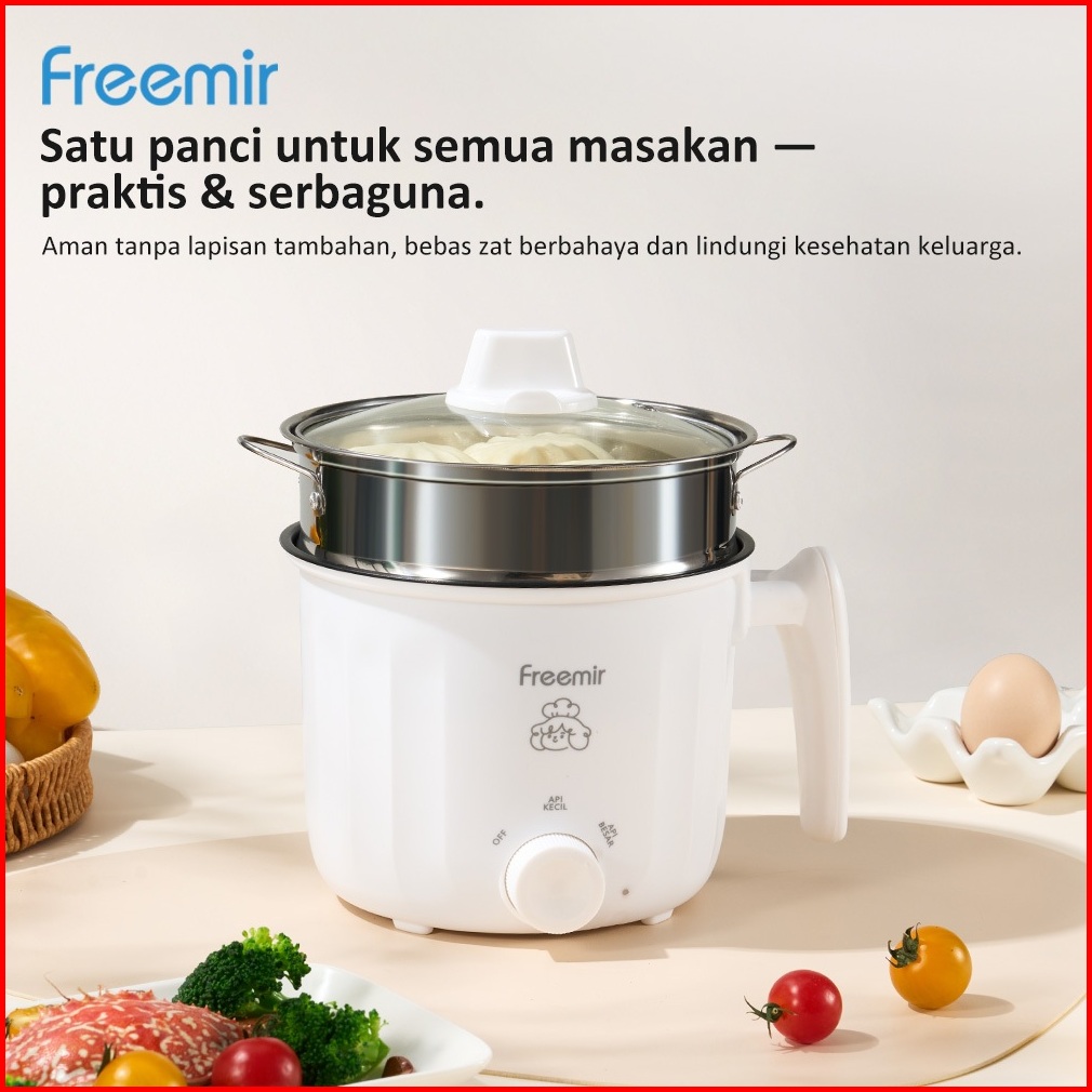 Free 4 Piring Freemir Panci Listrik Anti Lengket 1.2 Liter Hemat Listrik Kukusan Tutup Kaca