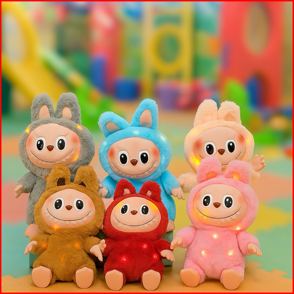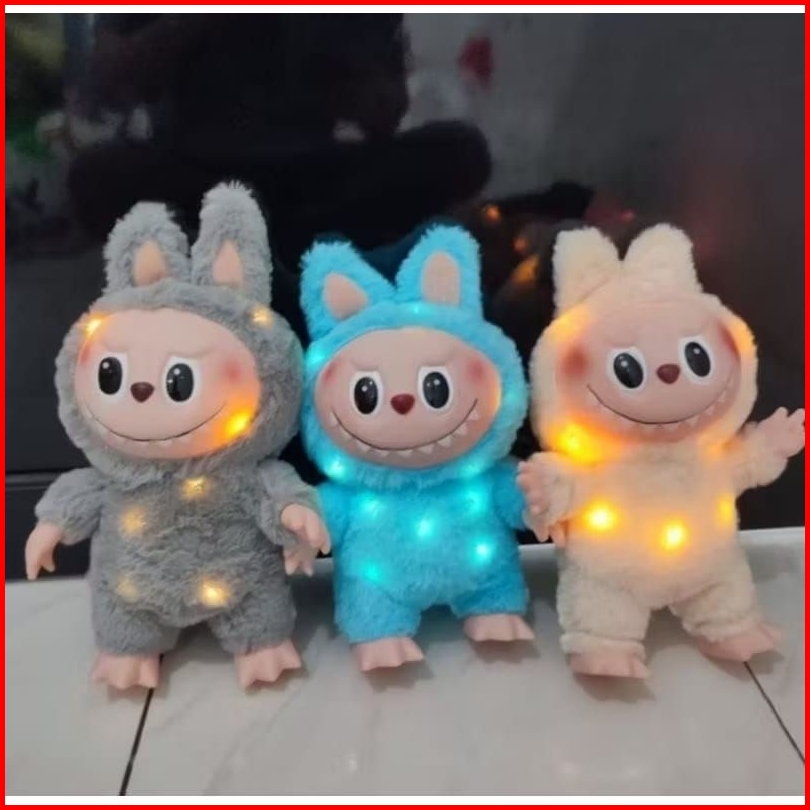 Boneka Labubu Led The Monsters 35cm Muka Karet Vynil Face Heart Macaron Kawaii Unofficial