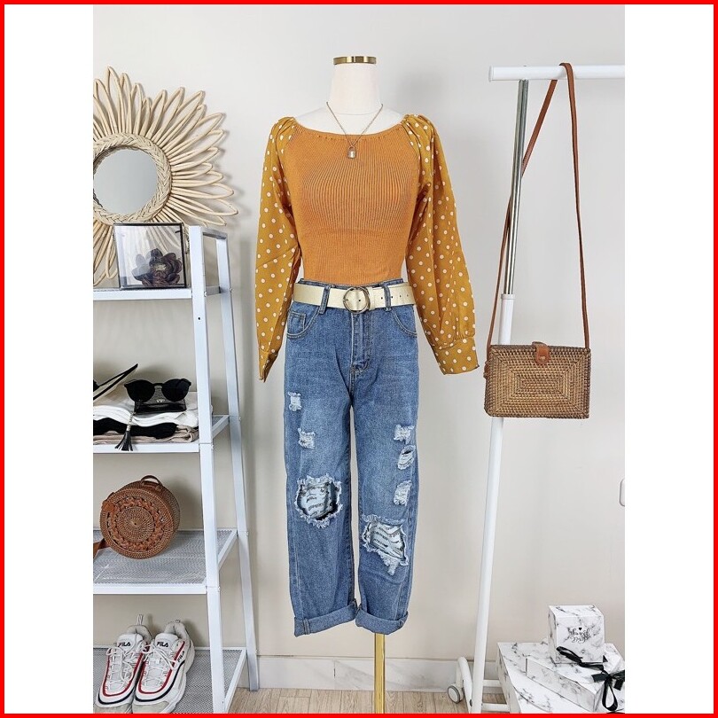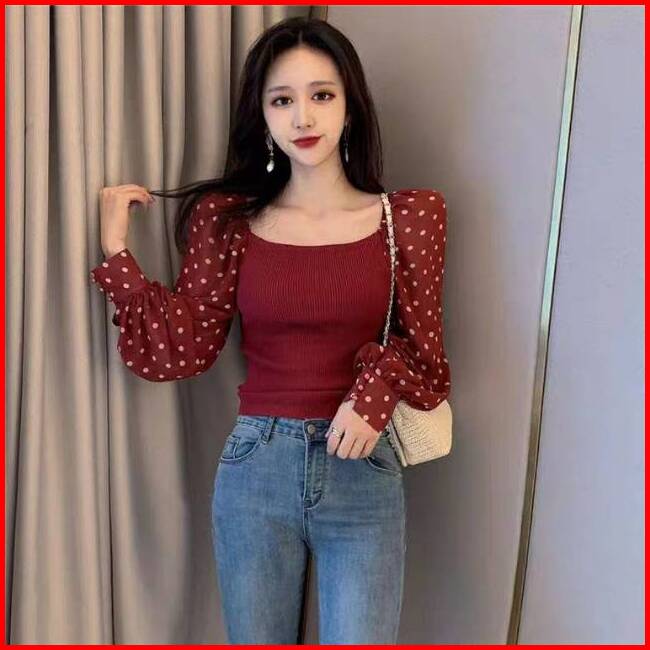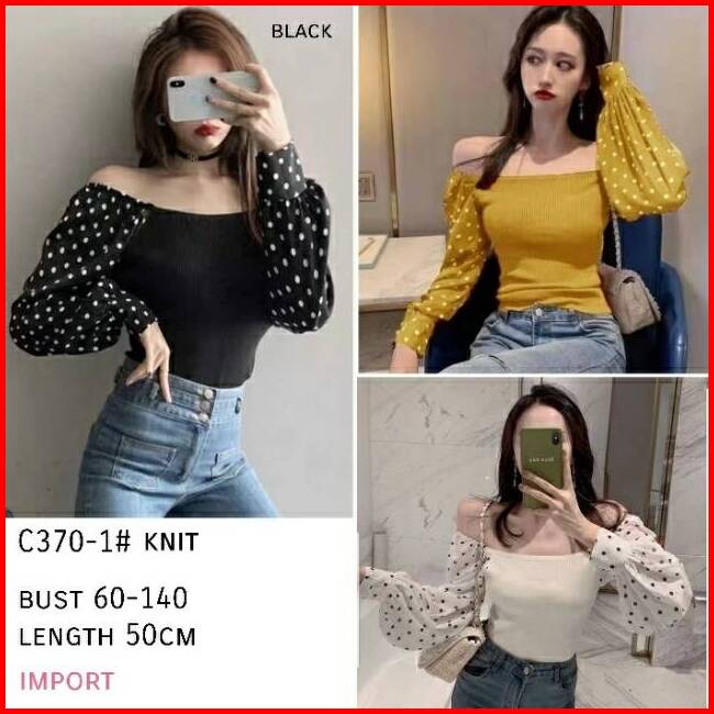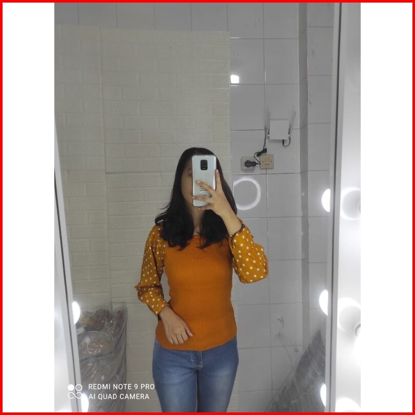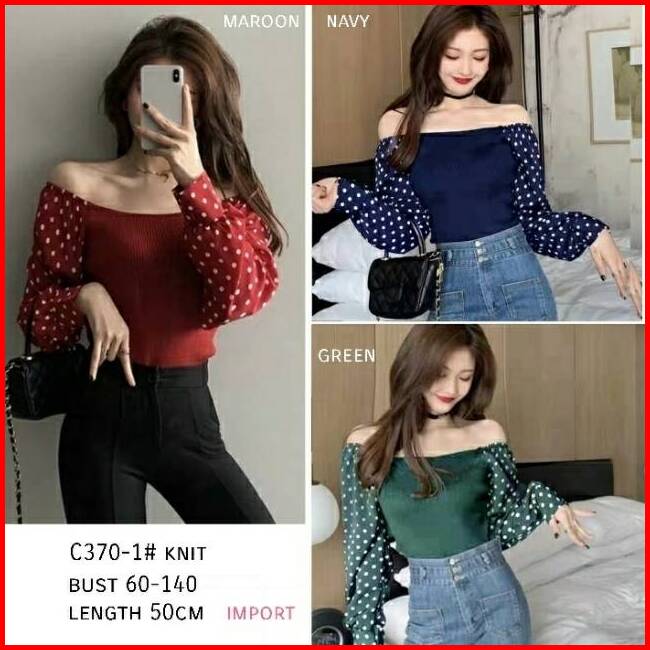 Basica Moda C370-1 Atasan Top Blouse Wanita Polkadot Rajut