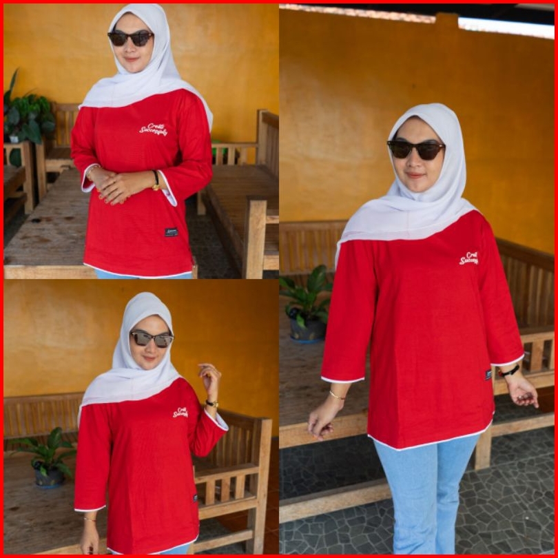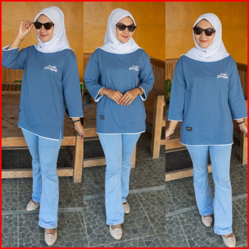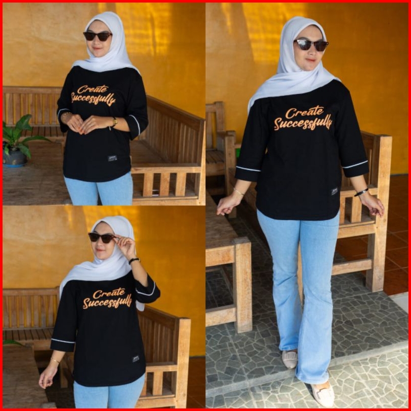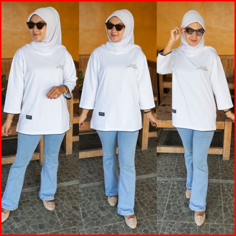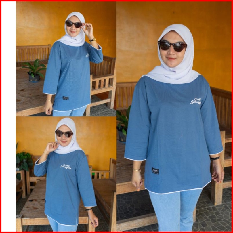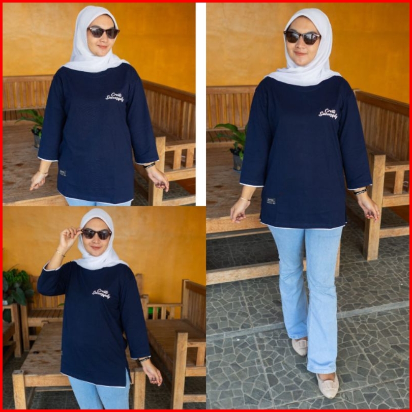 Kaos Lengan Balap Dan Cubit 01b Jumbo Atasan Wanita Model List Lengan 7 8 Jahitan Rapi Bahan Katun Bahan Kombet 20s