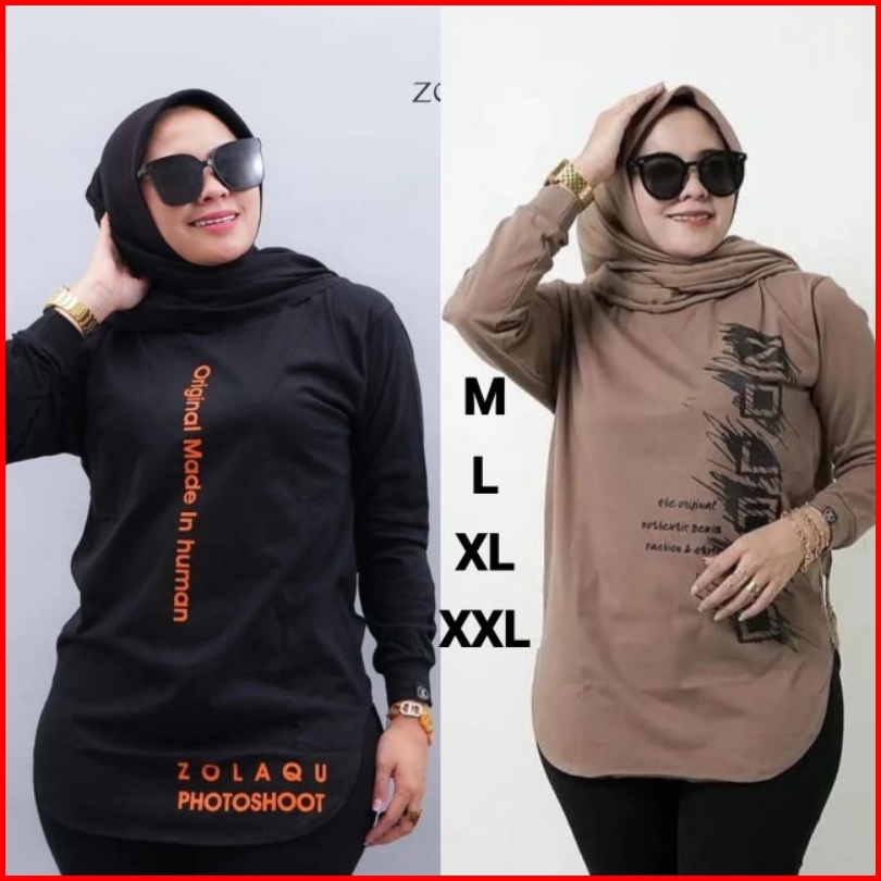 Kaos Semi Tunik Lengan Panjang Zolaqu Cotton Combed 24s Zolaqu Jumbo Kekinian Terbaru 2023