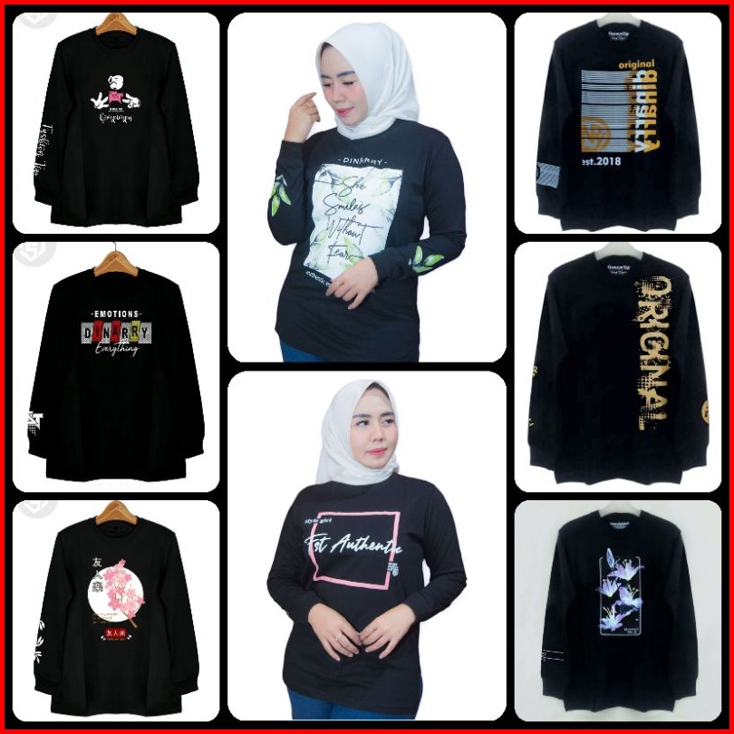 Kaos Hitam Lengan Panjang Kaos Jumbo Terlaris Baju Wanita Lengan Panjang Dinarry Size M Xxl Zolaqu Style