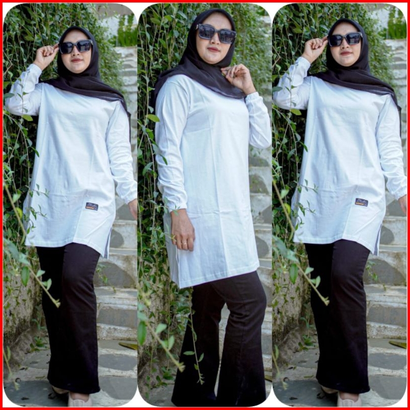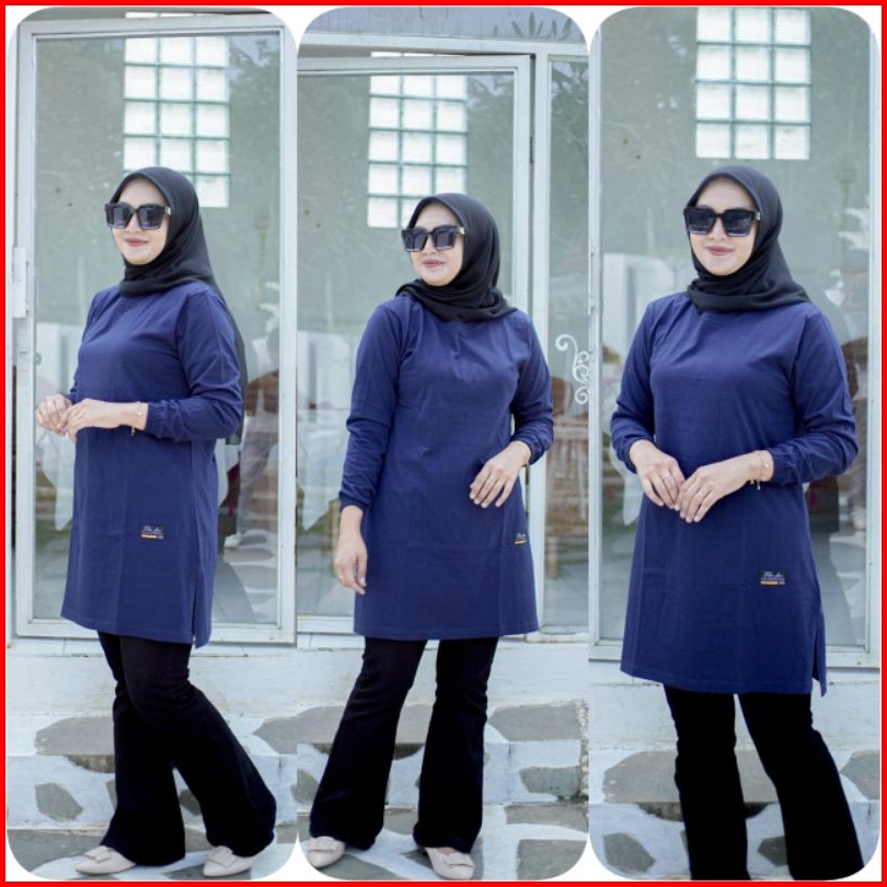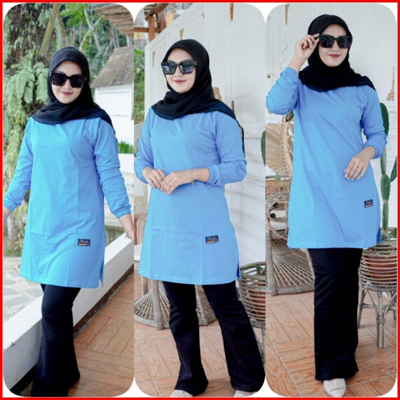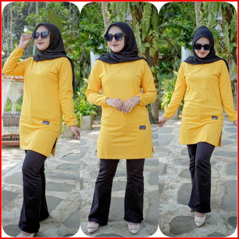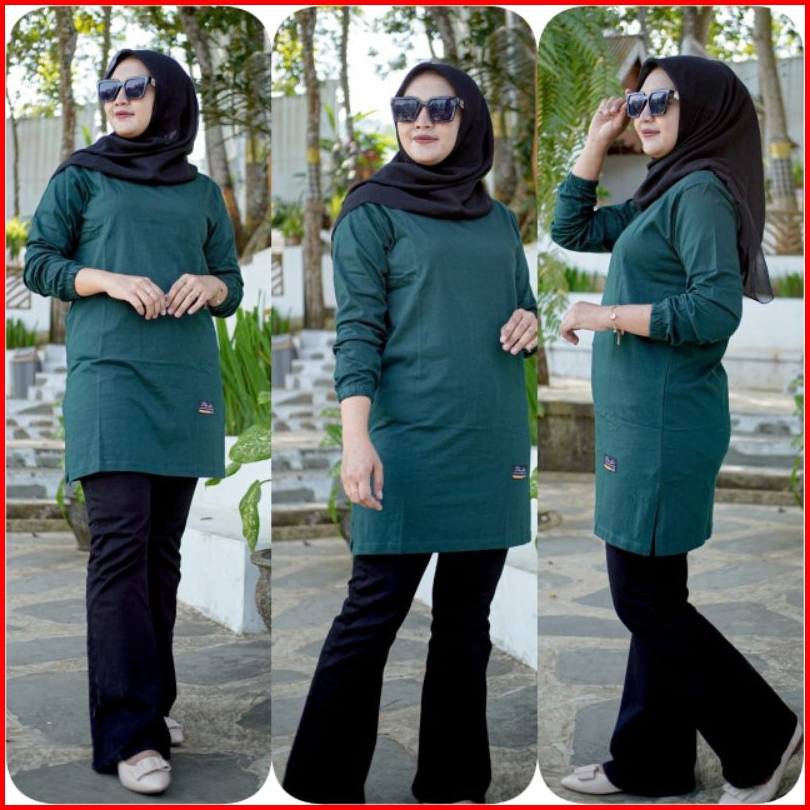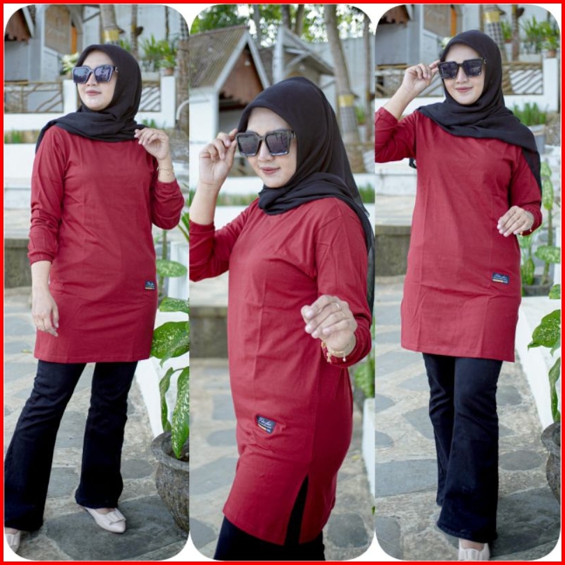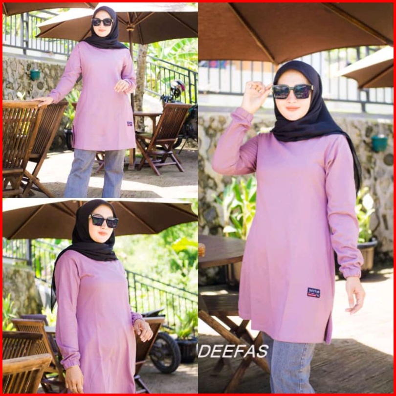 Tunik Polos 011 Jumbo Tangan Kerut Pakai Karet Jahitan Belah Pinggir Bahan Kombet 20s Brand Deefas