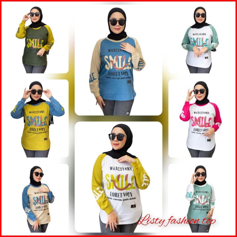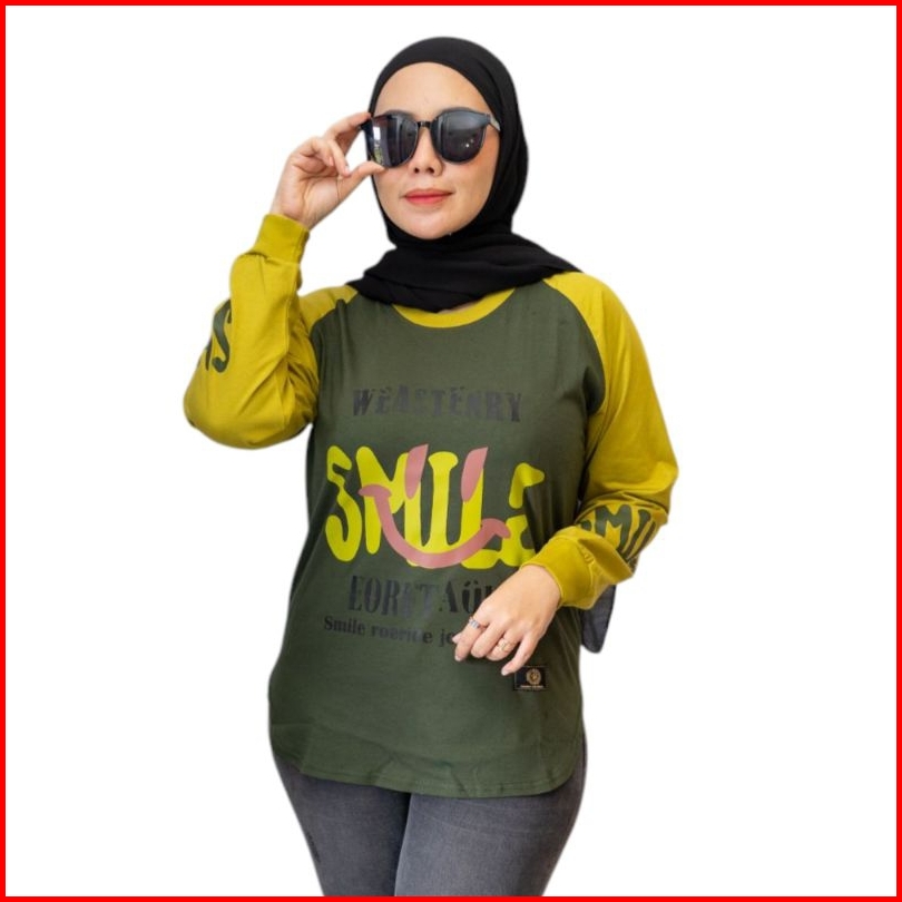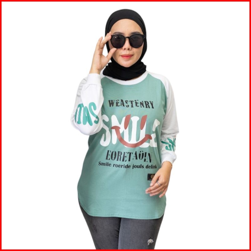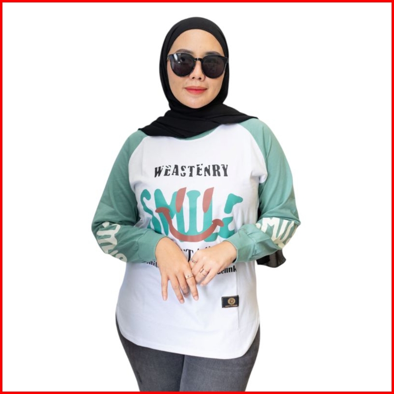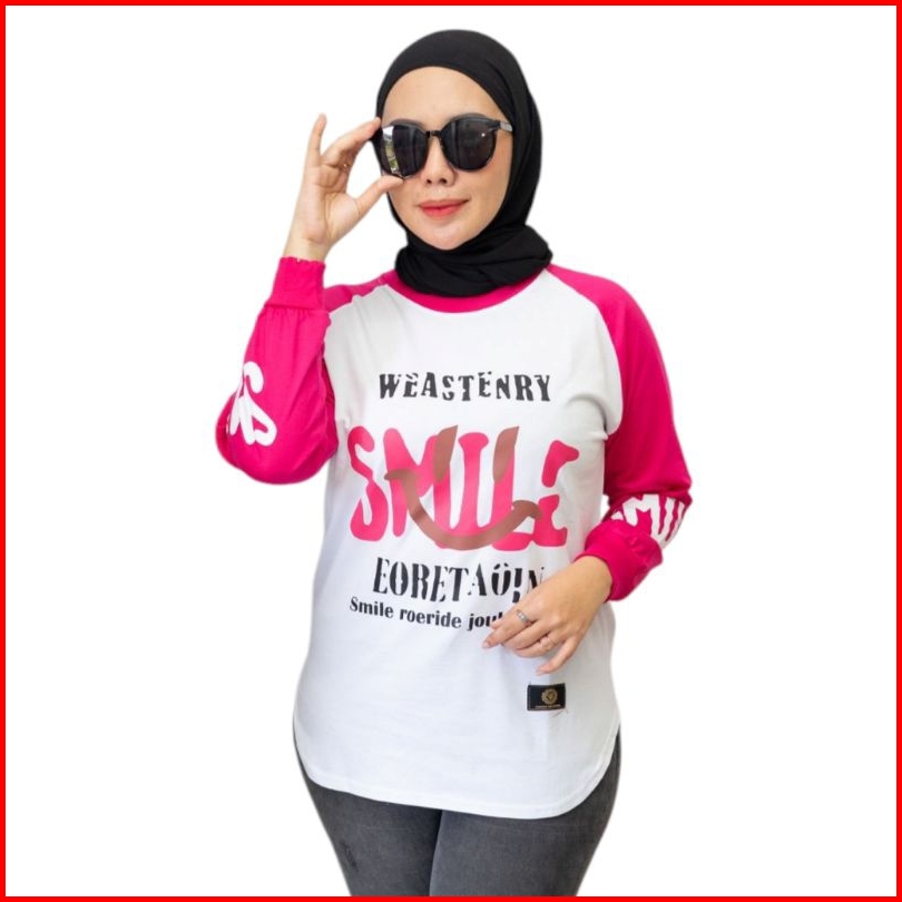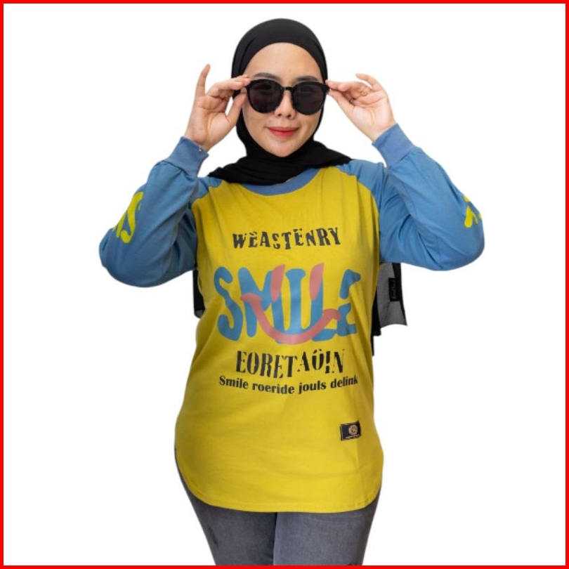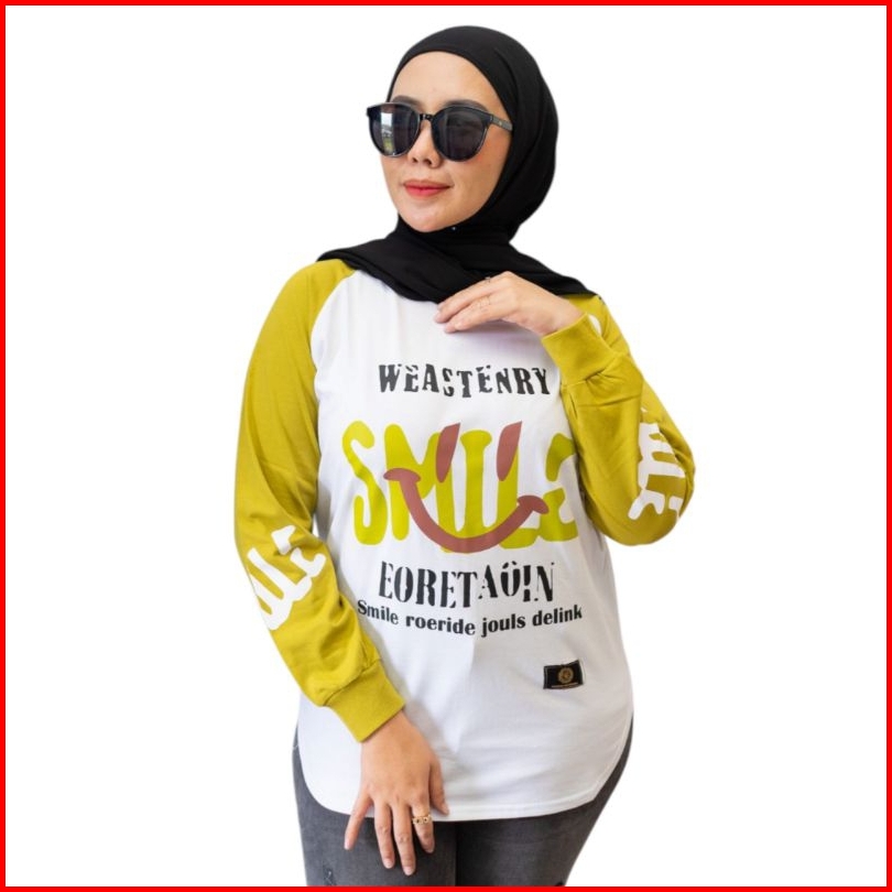 Kaos Wanita Katun Lengan Panjang Bawah Oval Terbaru Motif Lengan Panjang Regelan Terlaris