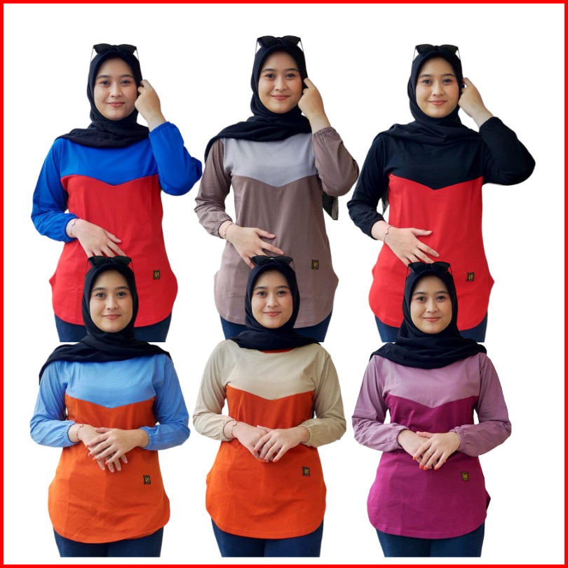 Kaos Atasan Wanita Premium Kombinasi Katun Combed Adem Tidak Panas