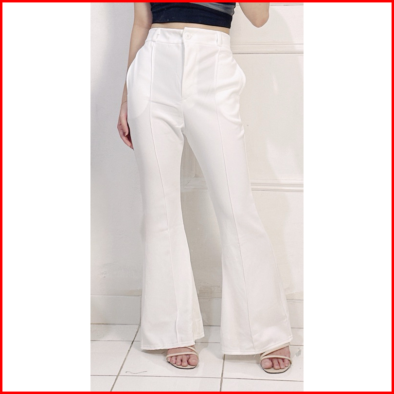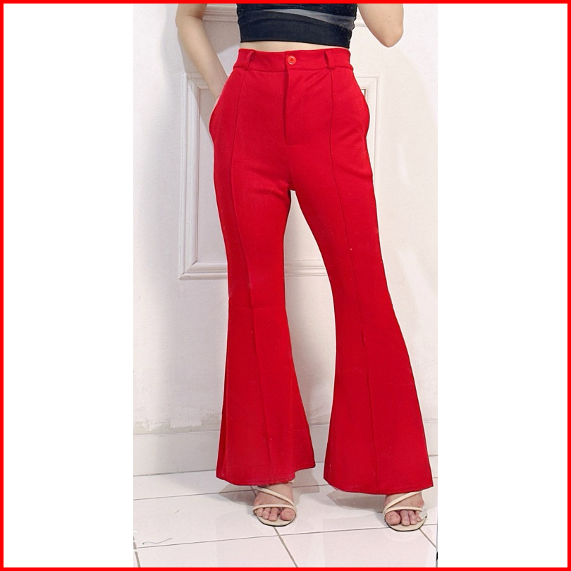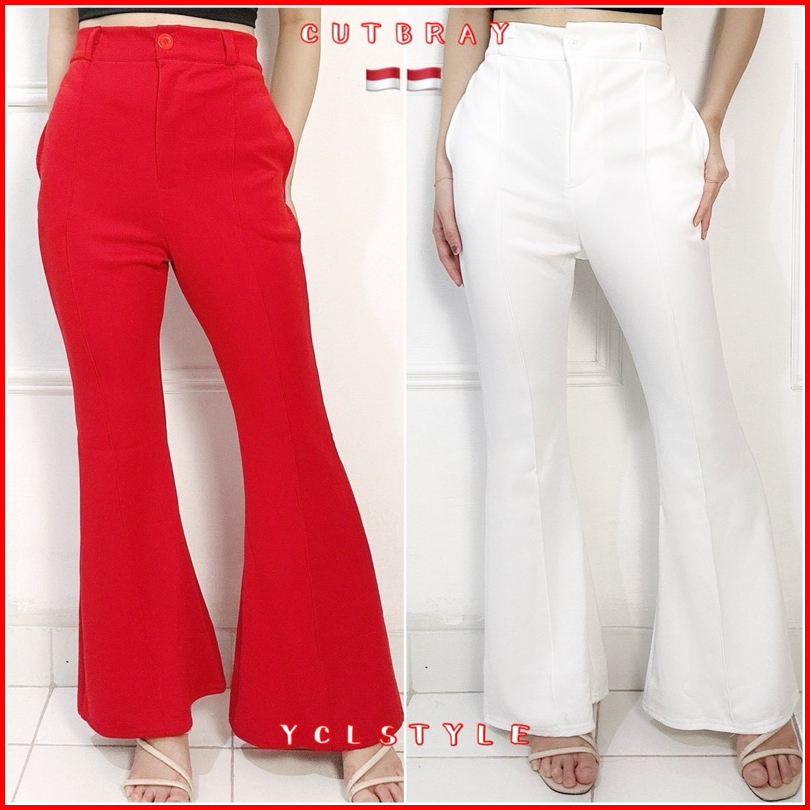Cutbray Kancing List - Celana Cutbray Hw Merah Putih Scuba Premium List Jahit Celana Wanita