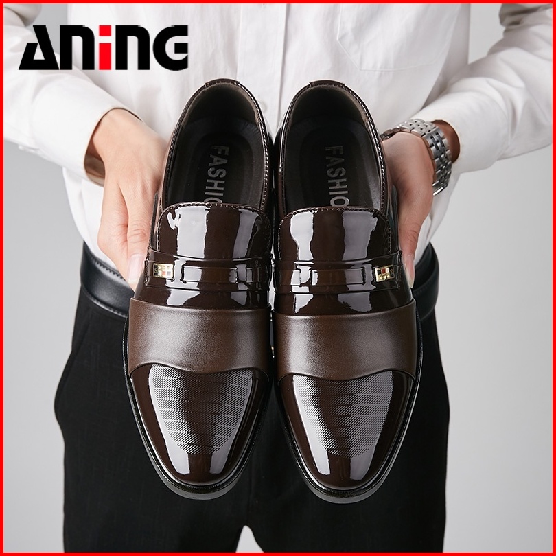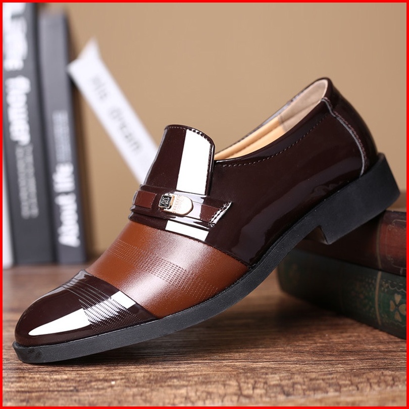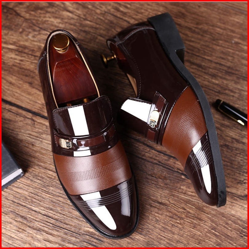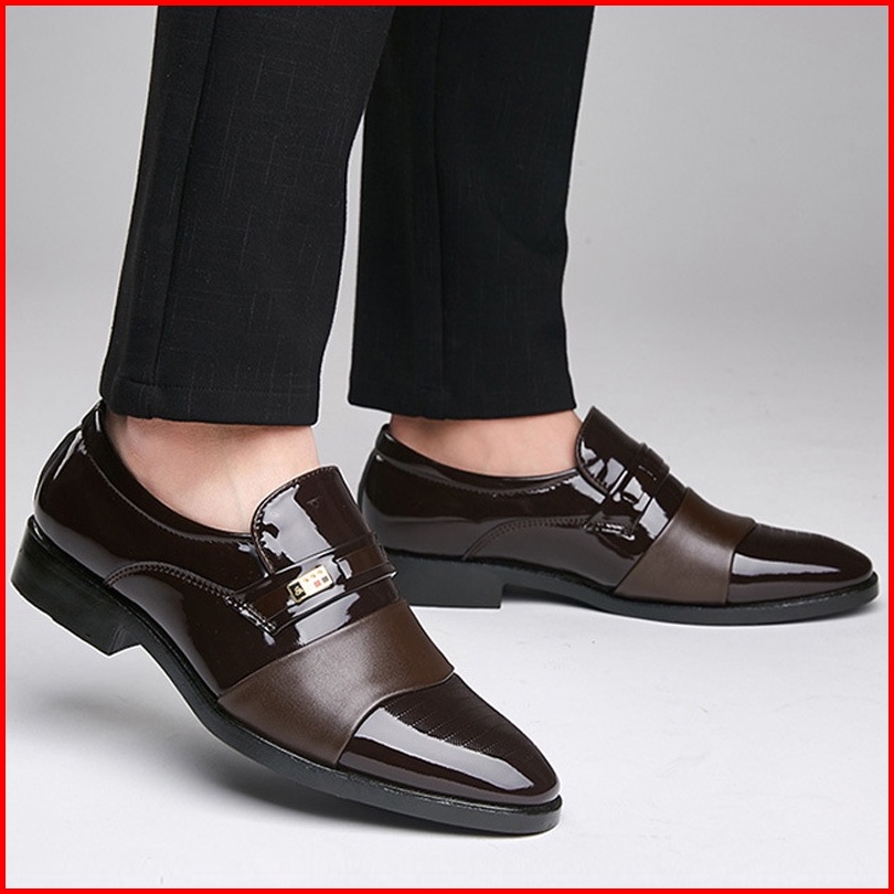 Ready Stocksepatu Pantofel Bahan Kulit Ukuran Besar Untuk Pria Bisnis Dengan Kotak Sepatu Coklat
