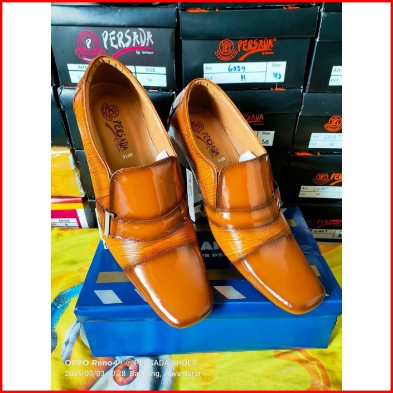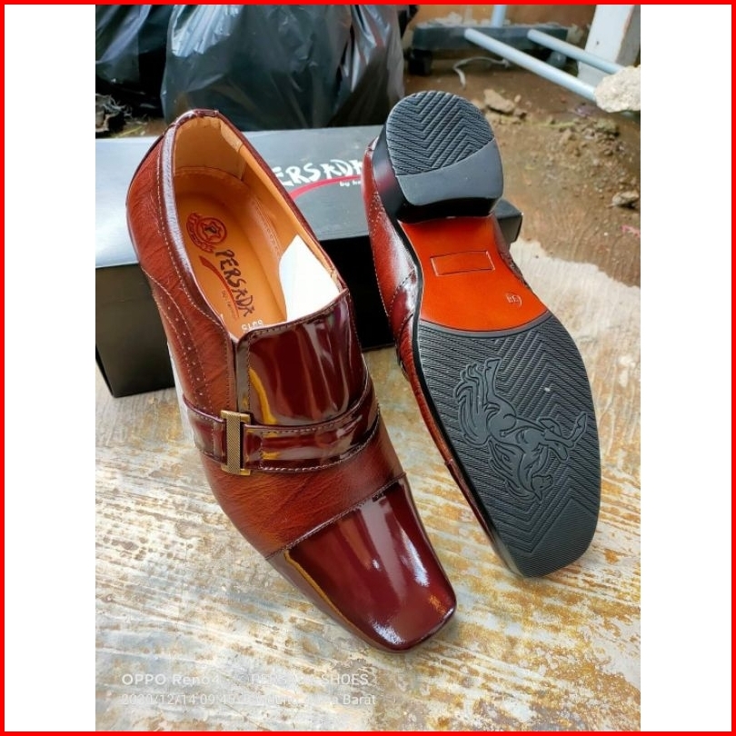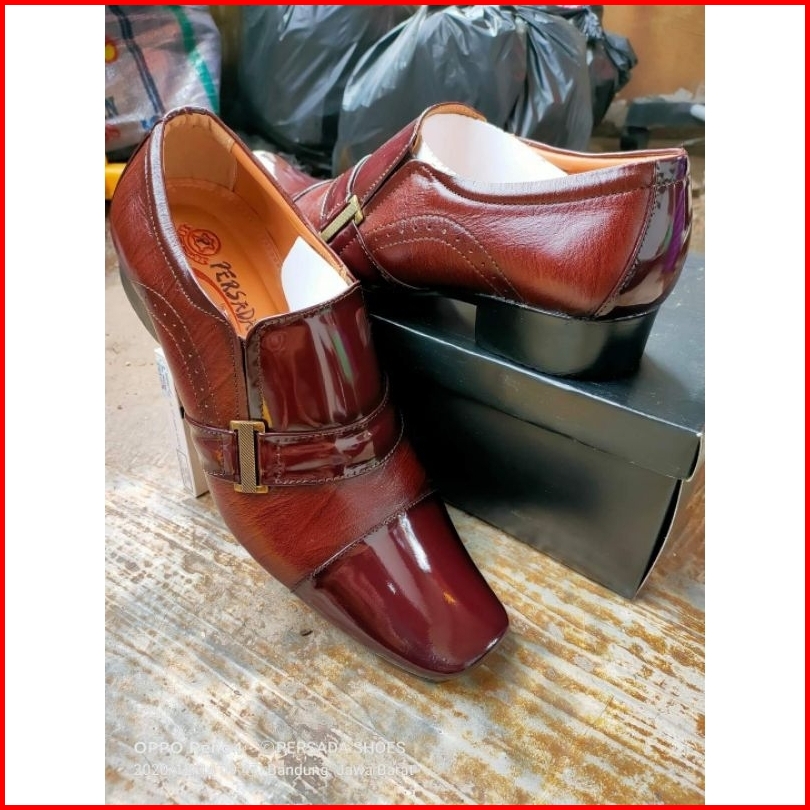 Sepatu Pantofel Formal Pria Kulit Sapi Asli 100 - Persada 6015 Maroon Produksi Sendiri