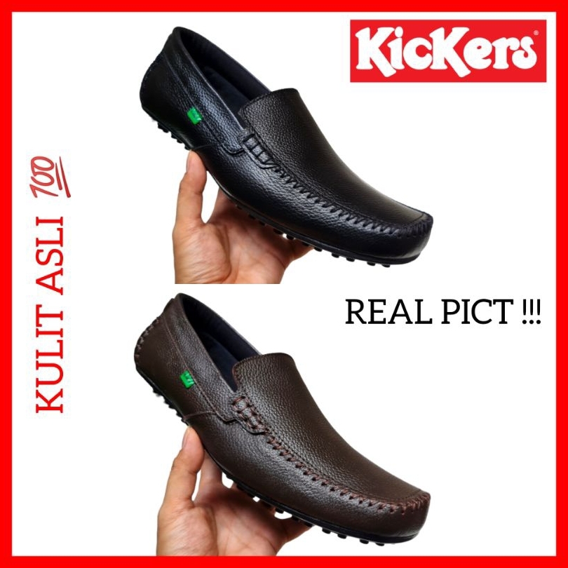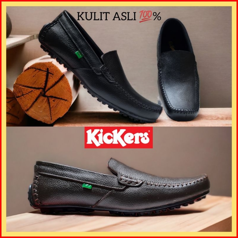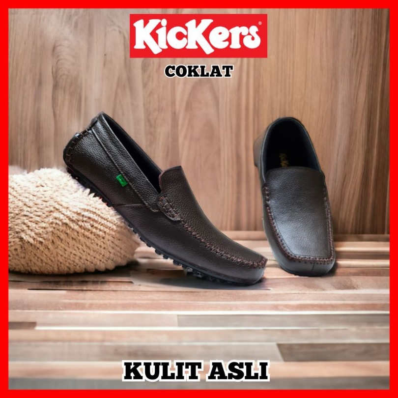 Sepatu Pantofel Pria Sepatu Kerja Formal Kickers Kulit Asli Sepatu Wedding Moccasin Slip On